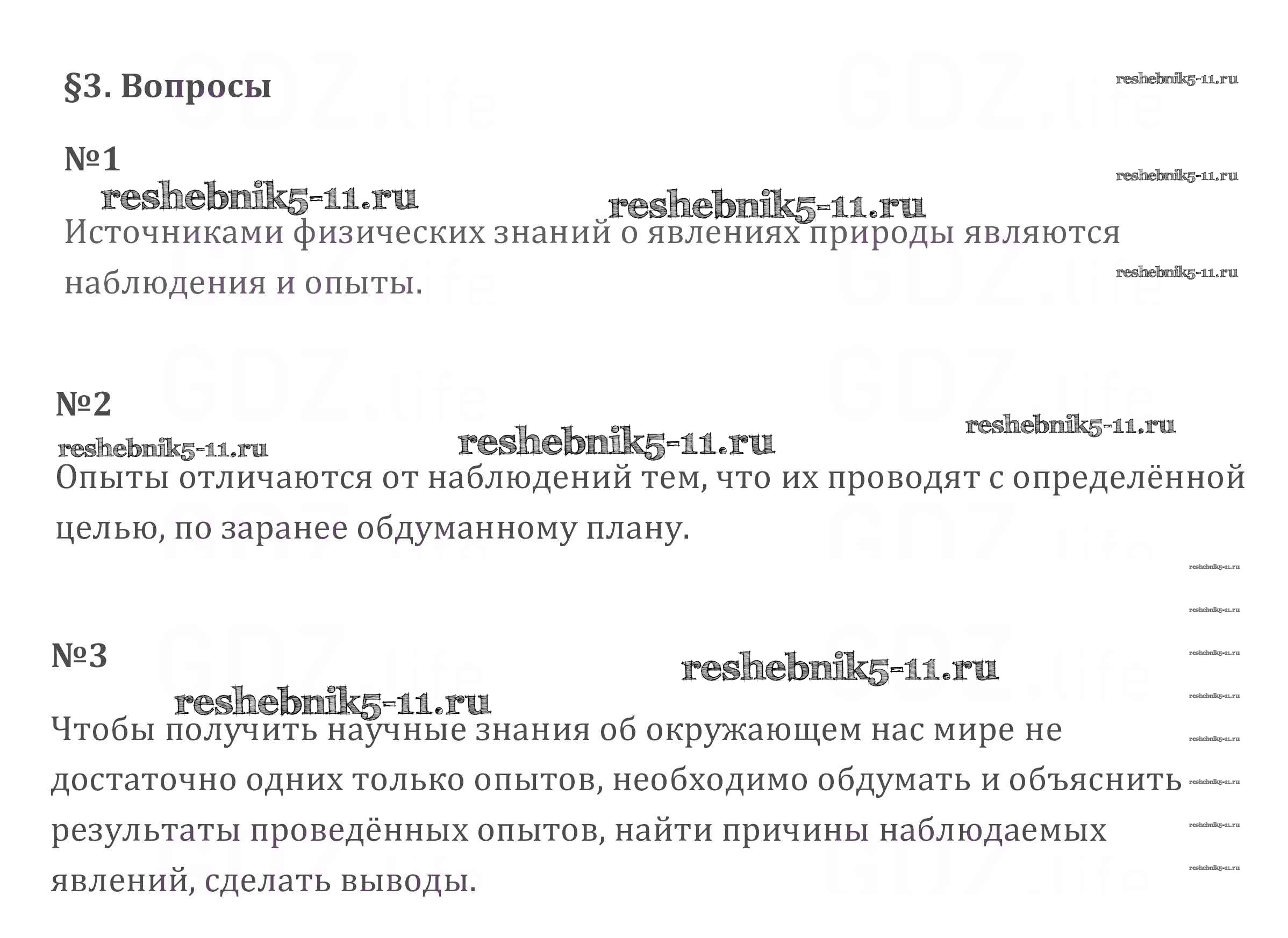 Готовая домашняя работа с ответами по Физике за 7 класс Перышкин Учебник Вертикаль Дрофа 2016 ФГОС - Вопросы. Параграфы §3