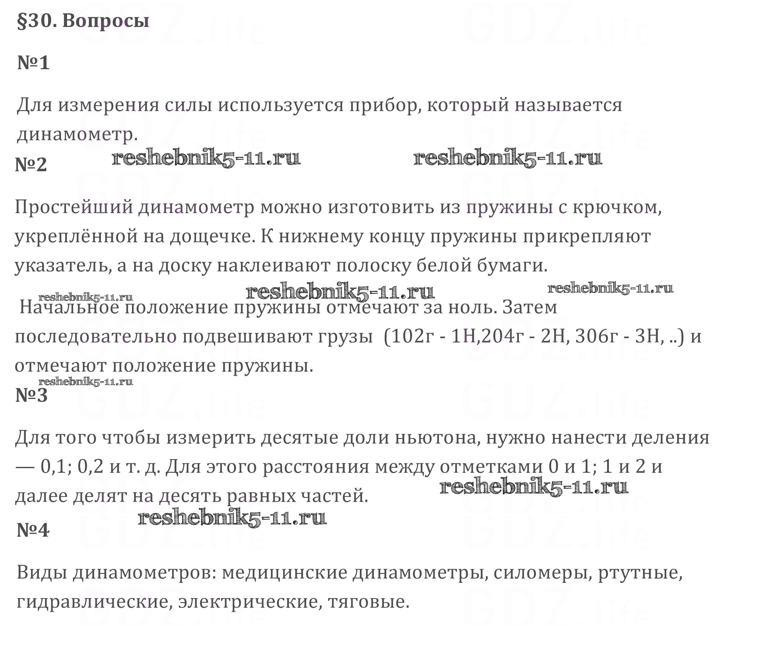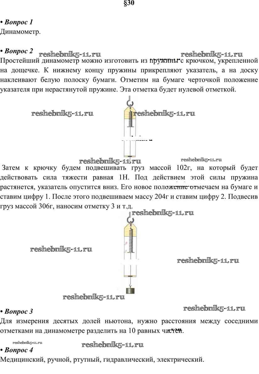 Готовая домашняя работа с ответами по Физике за 7 класс Перышкин Учебник Вертикаль Дрофа 2016 ФГОС - Вопросы. Параграфы §30