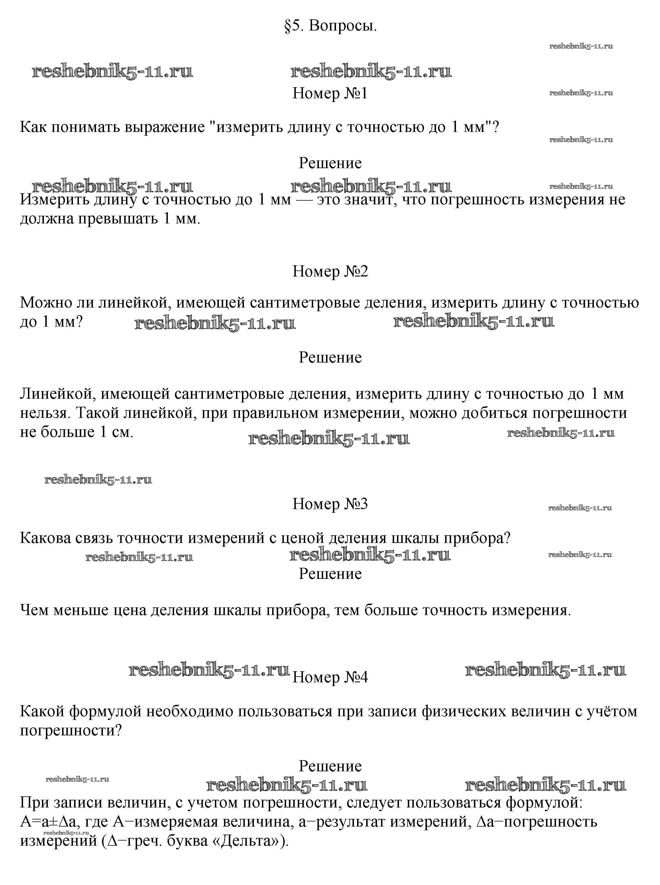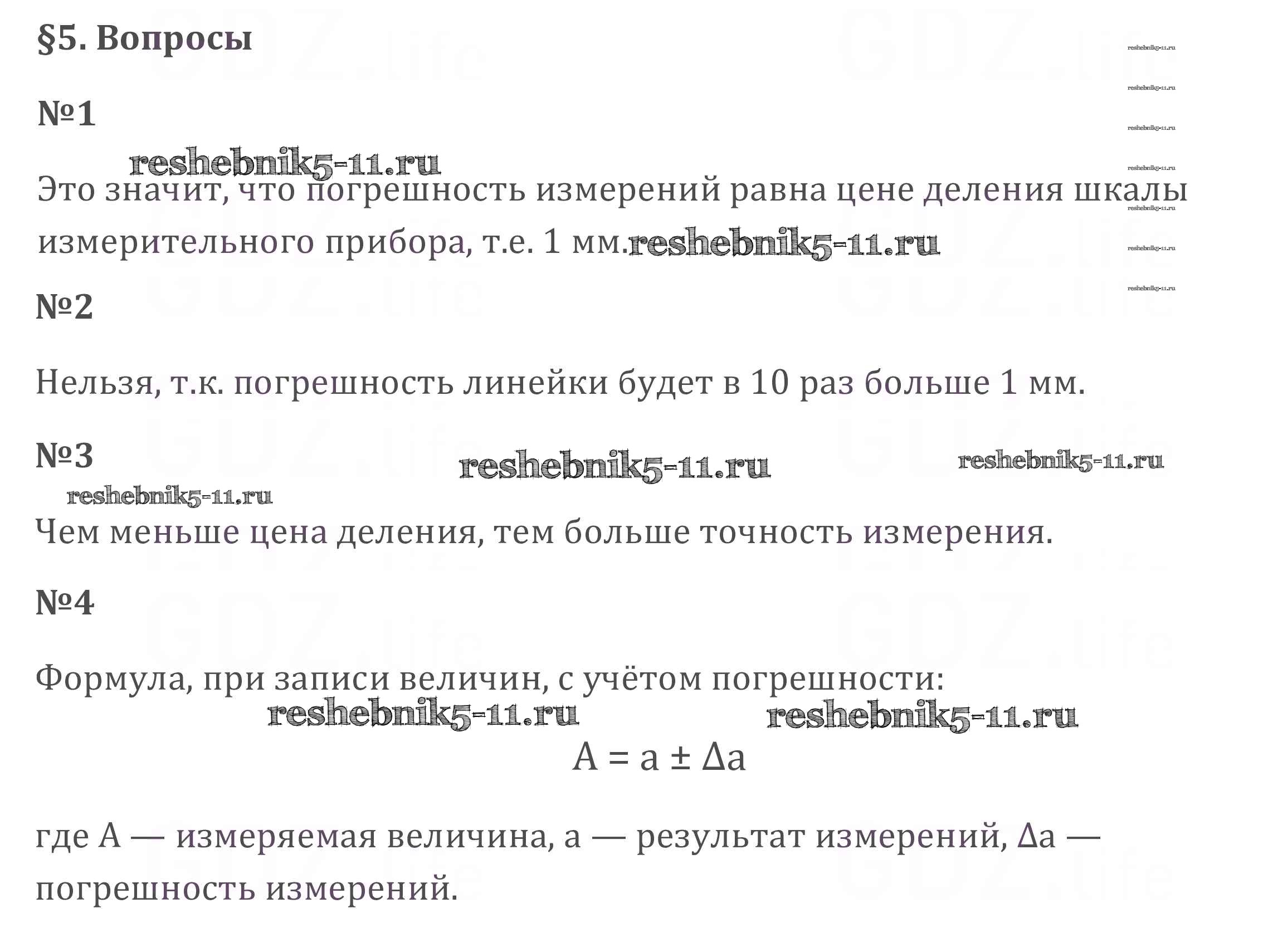 Готовая домашняя работа с ответами по Физике за 7 класс Перышкин Учебник Вертикаль Дрофа 2016 ФГОС - Вопросы. Параграфы §5