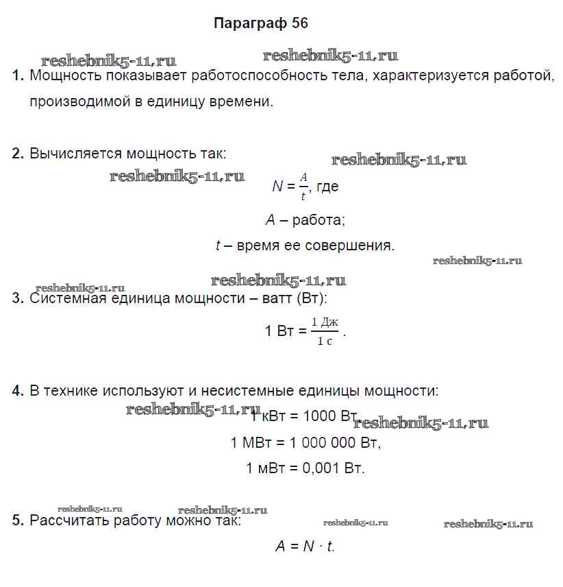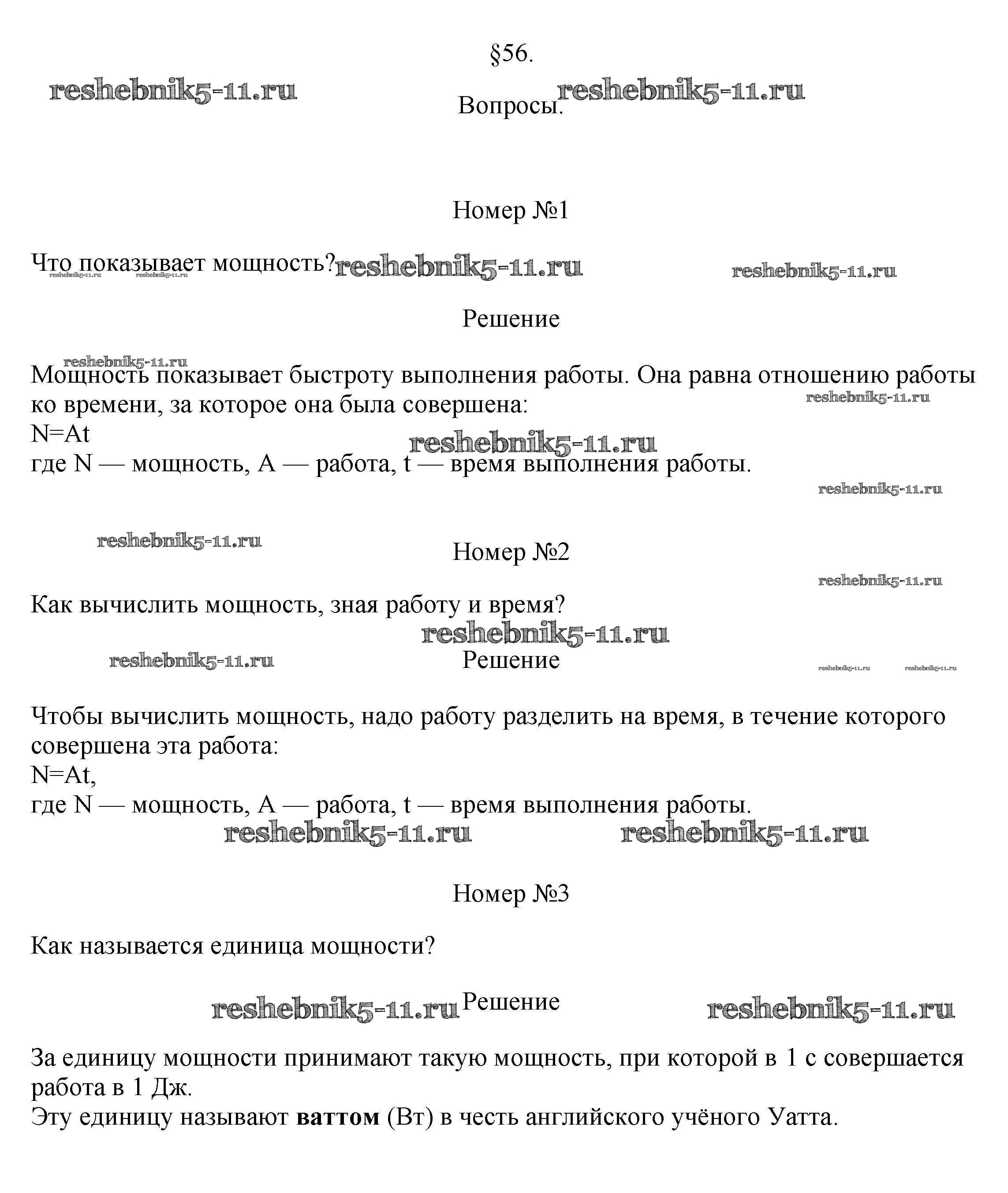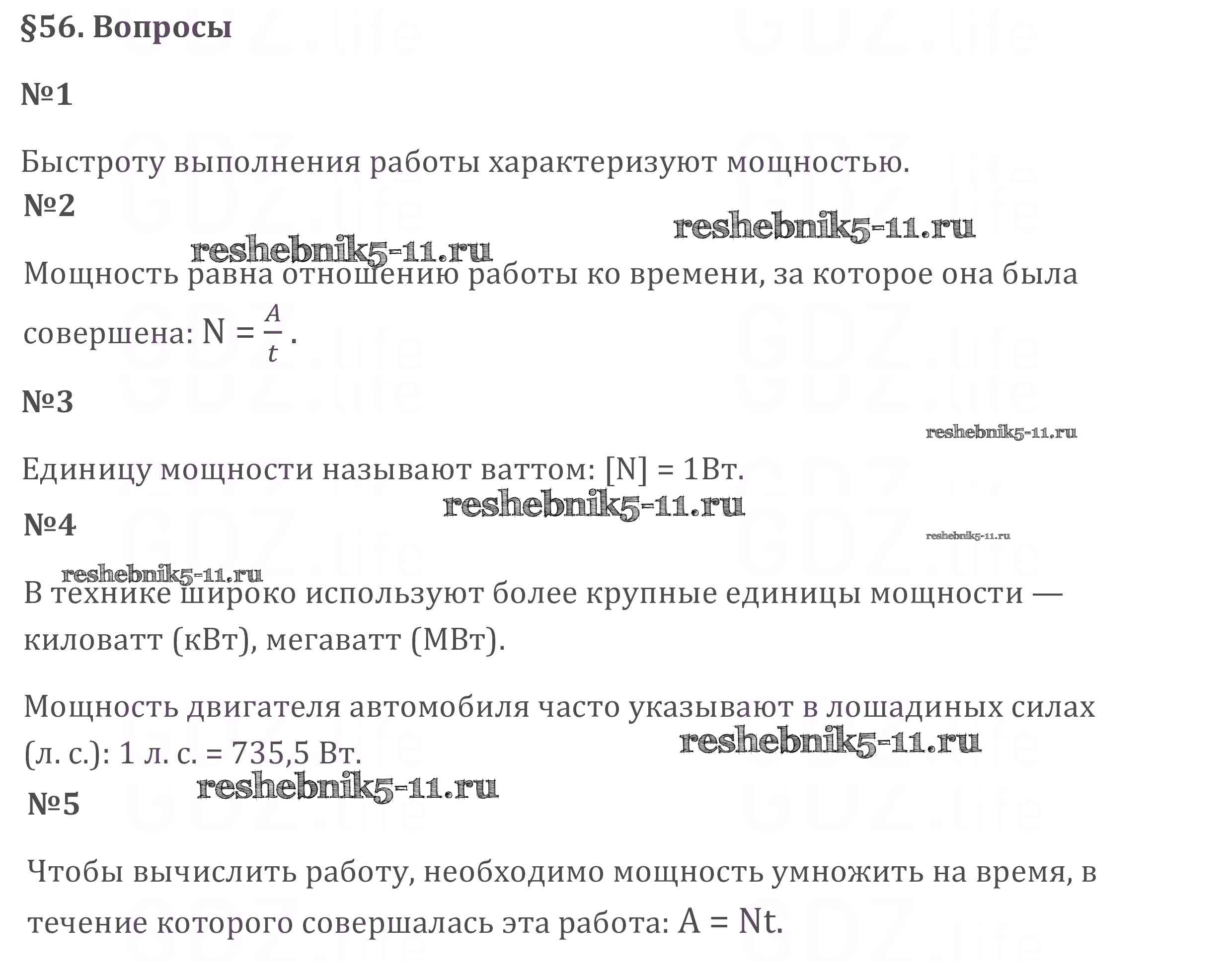 Готовая домашняя работа с ответами по Физике за 7 класс Перышкин Учебник Вертикаль Дрофа 2016 ФГОС - Вопросы. Параграфы §56