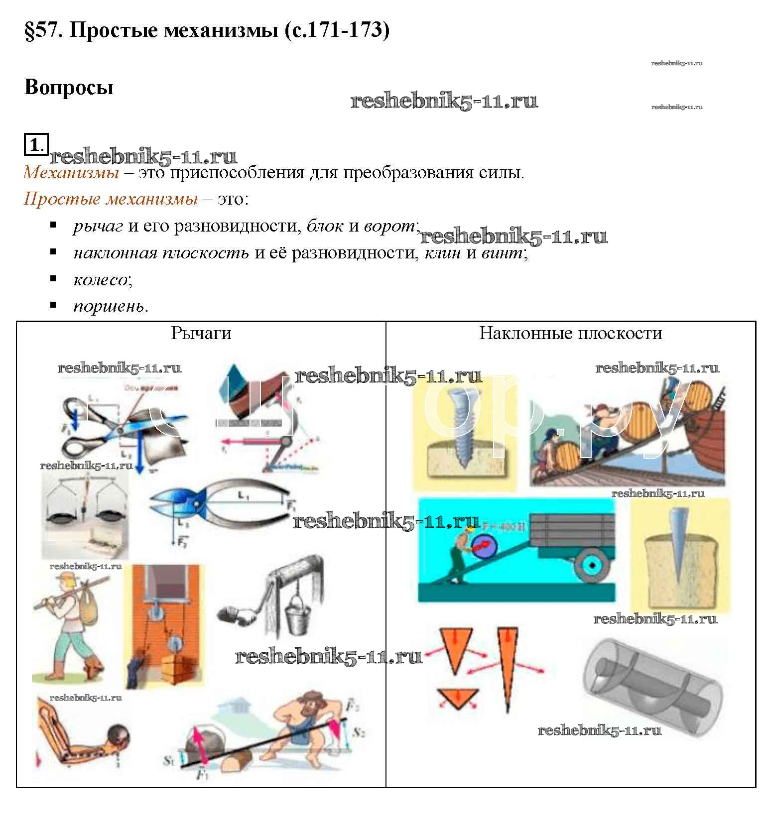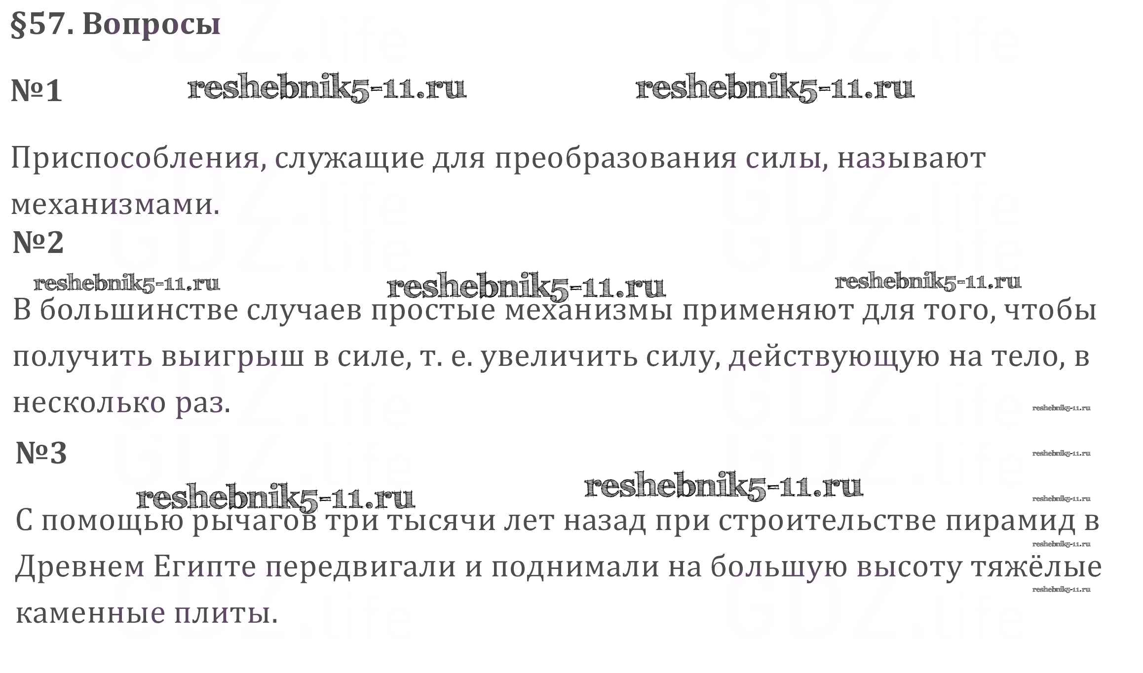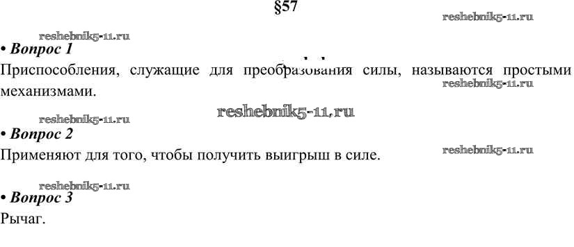 Готовая домашняя работа с ответами по Физике за 7 класс Перышкин Учебник Вертикаль Дрофа 2016 ФГОС - Вопросы. Параграфы §57