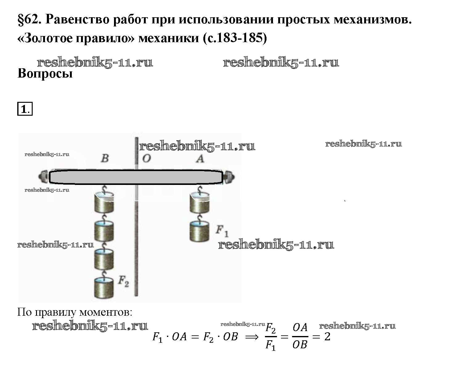 Физика за 7 класс Перышкин Учебник Вертикаль Дрофа вопрос. параграф §62