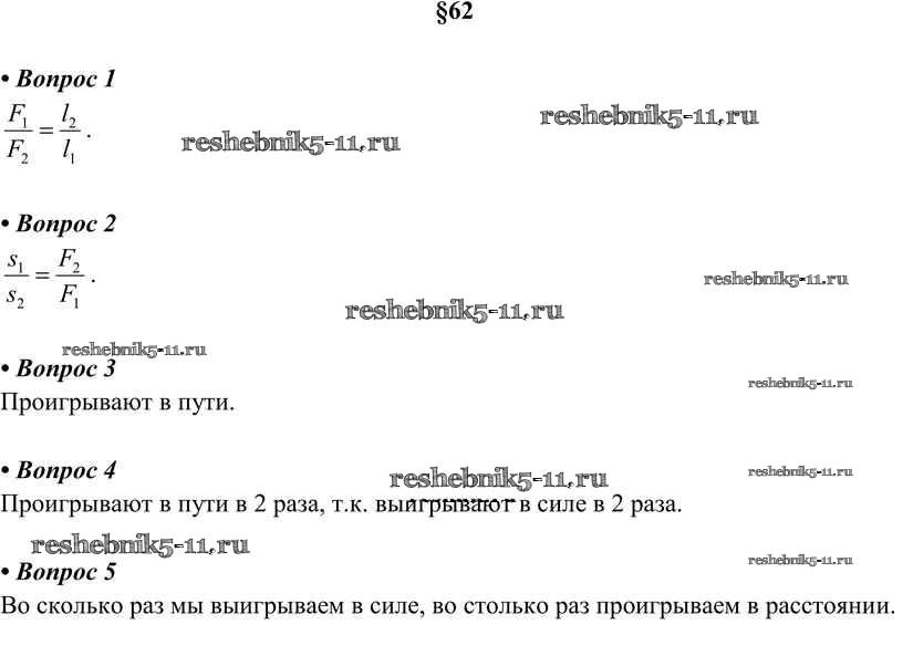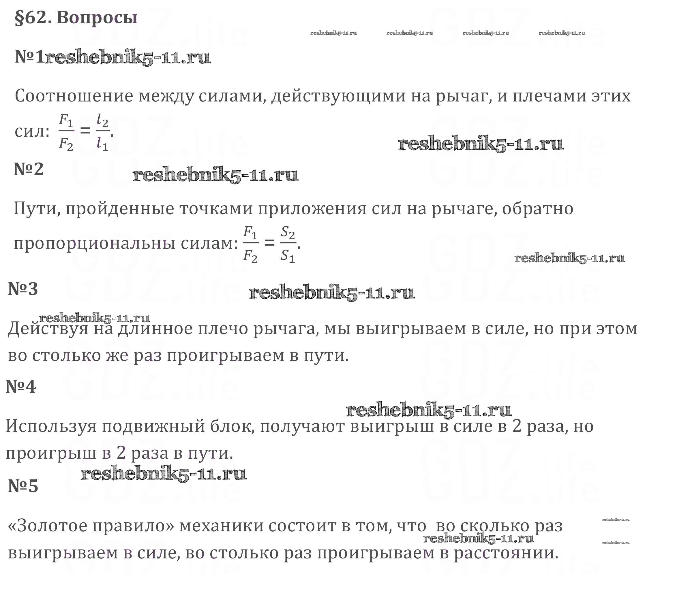 Готовая домашняя работа с ответами по Физике за 7 класс Перышкин Учебник Вертикаль Дрофа 2016 ФГОС - Вопросы. Параграфы §62