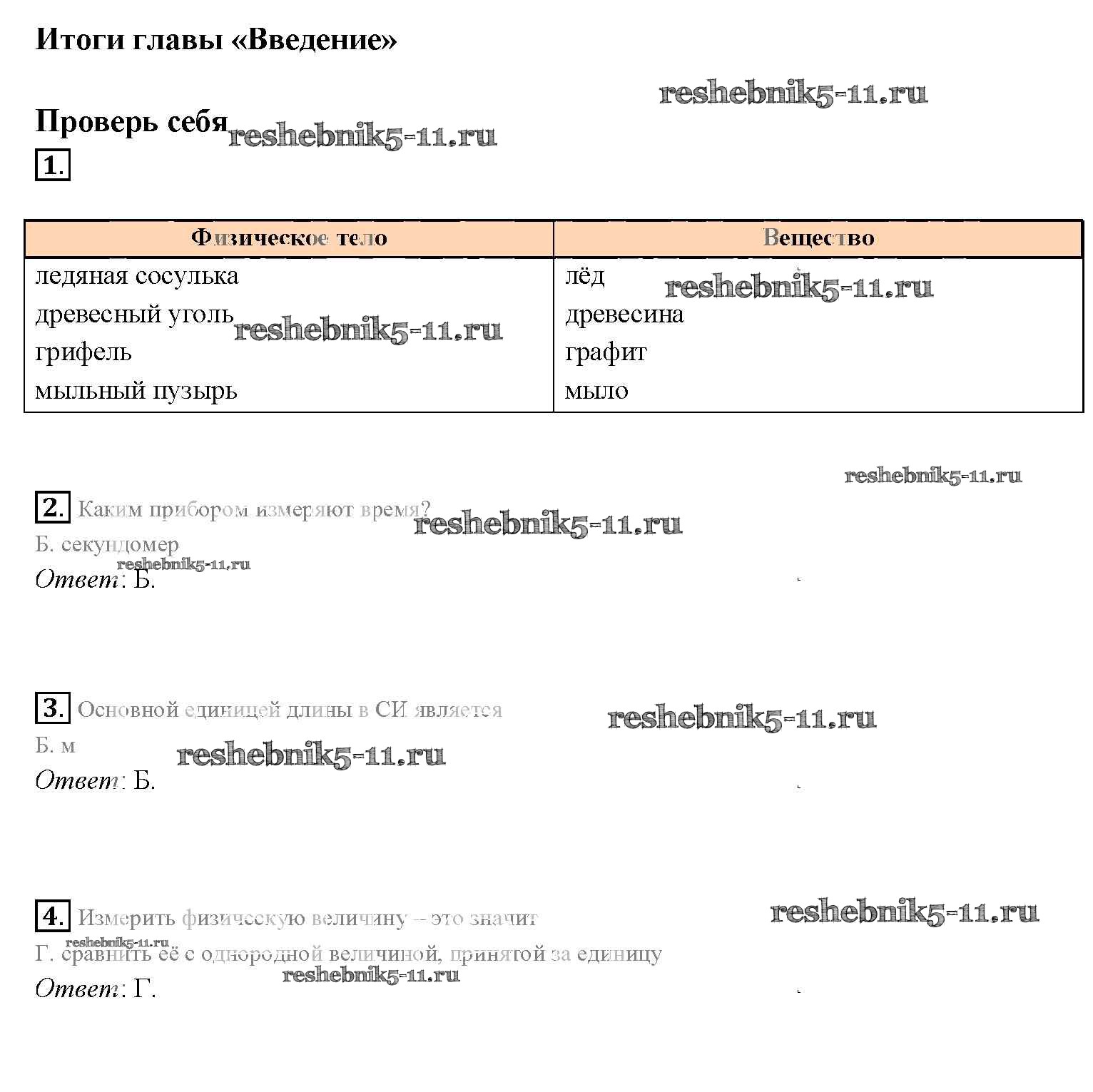 Готовая домашняя работа с ответами по Физике за 7 класс Перышкин Учебник Вертикаль Дрофа 2016 ФГОС - Проверь себя Введение