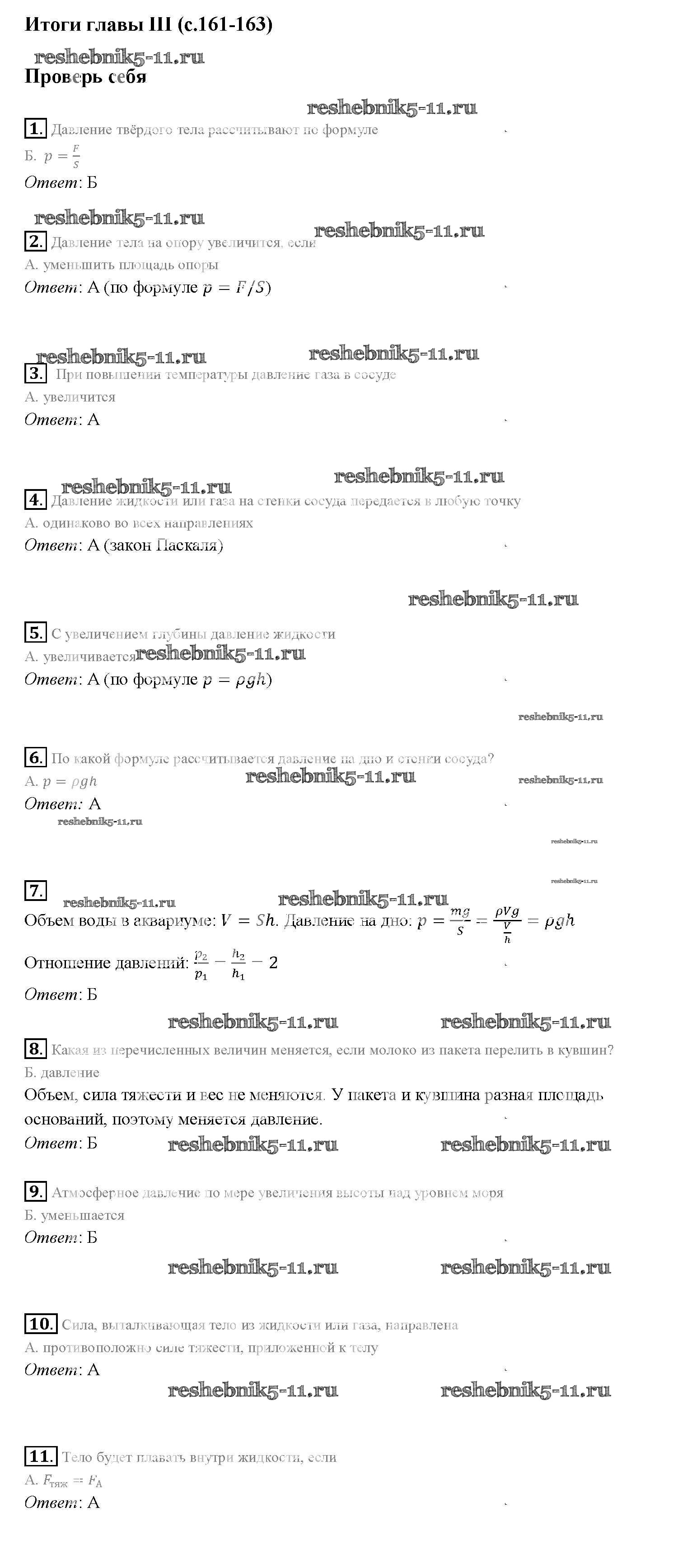 Физика за 7 класс Перышкин Учебник Вертикаль Дрофа проверь себя Глава 3