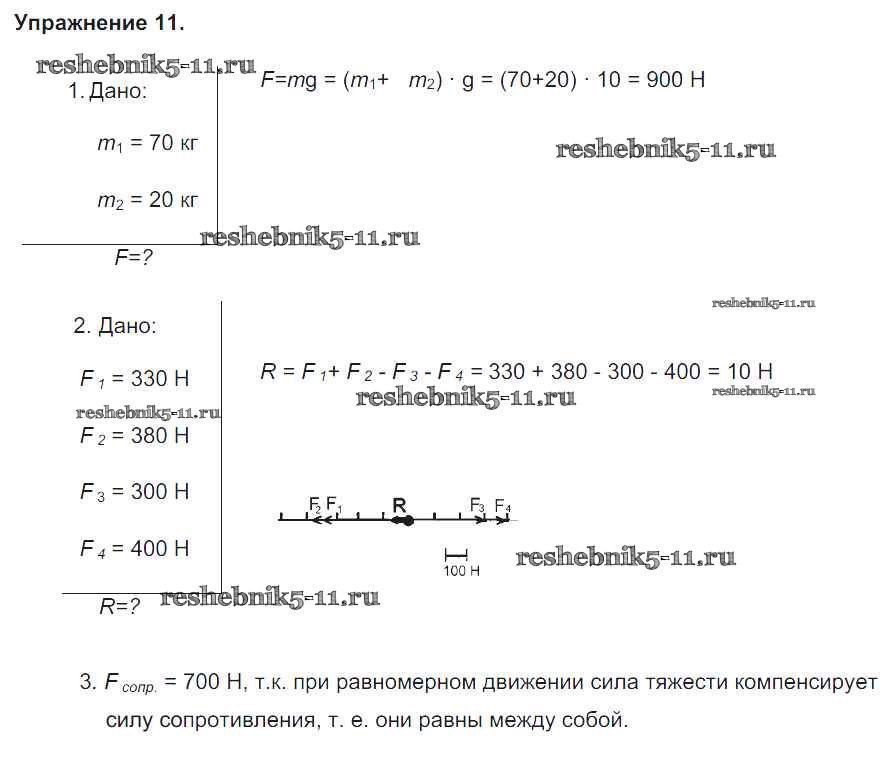 Готовая домашняя работа с ответами по Физике за 7 класс Перышкин Учебник Вертикаль Дрофа 2016 ФГОС - Упражнения 11