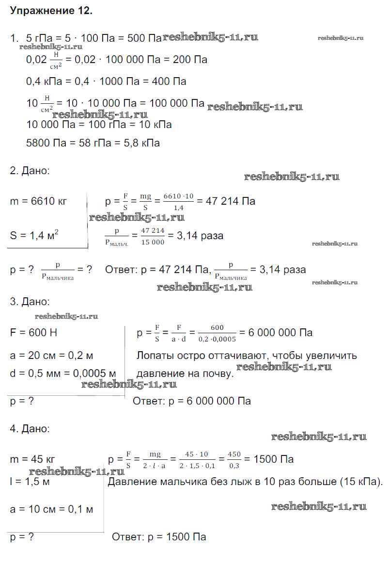 Готовая домашняя работа с ответами по Физике за 7 класс Перышкин Учебник Вертикаль Дрофа 2016 ФГОС - Упражнения 12