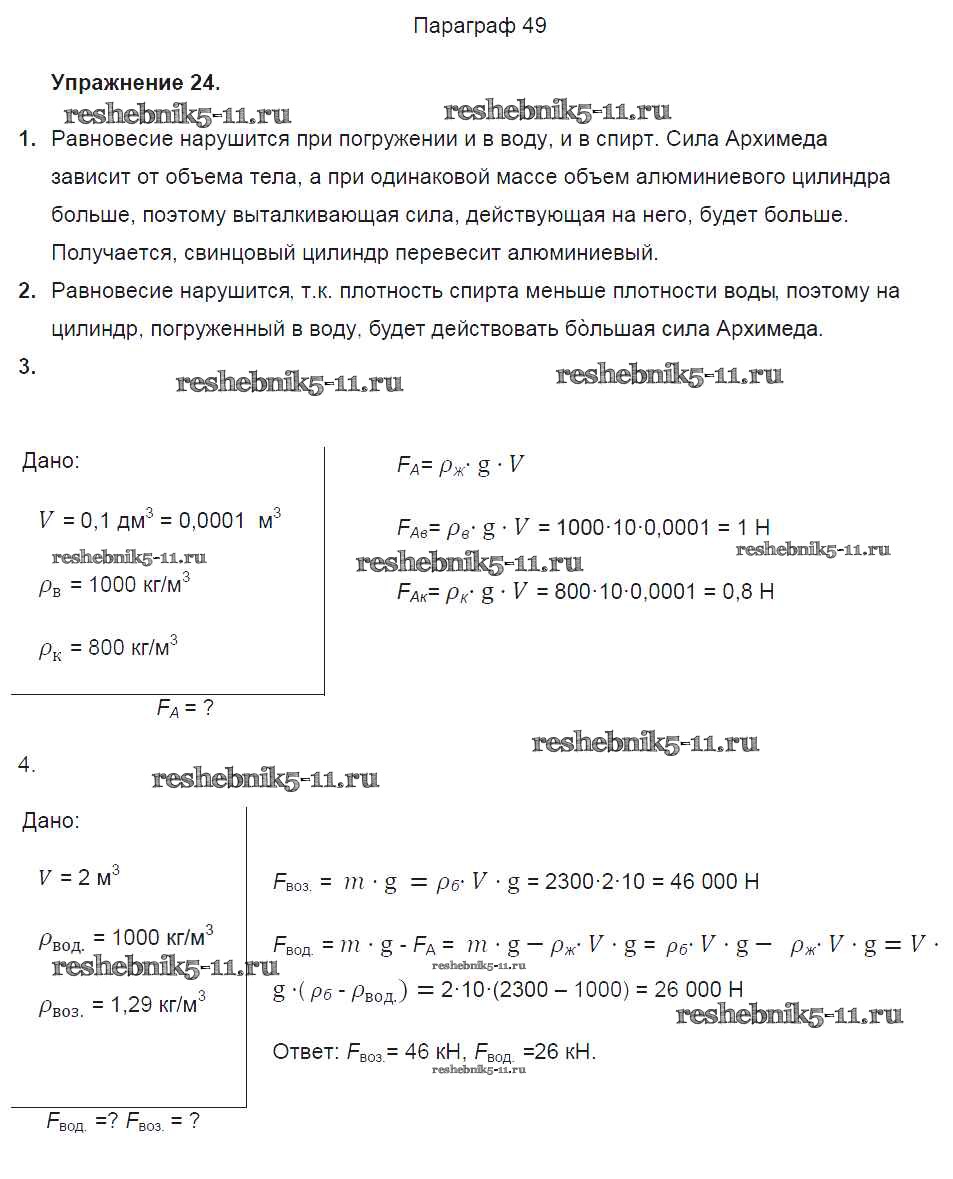 Готовая домашняя работа с ответами по Физике за 7 класс Перышкин Учебник Вертикаль Дрофа 2016 ФГОС - Упражнения 24