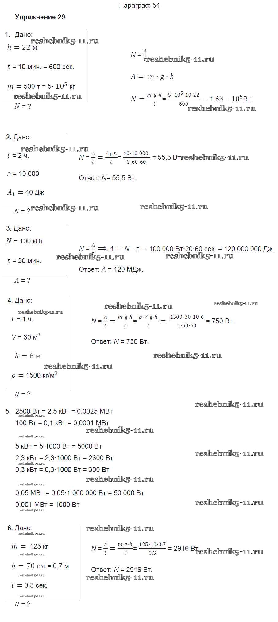 Готовая домашняя работа с ответами по Физике за 7 класс Перышкин Учебник Вертикаль Дрофа 2016 ФГОС - Упражнения 29