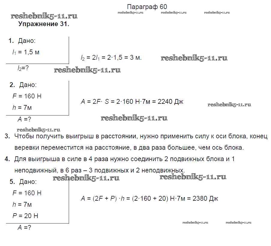 Готовая домашняя работа с ответами по Физике за 7 класс Перышкин Учебник Вертикаль Дрофа 2016 ФГОС - Упражнения 31