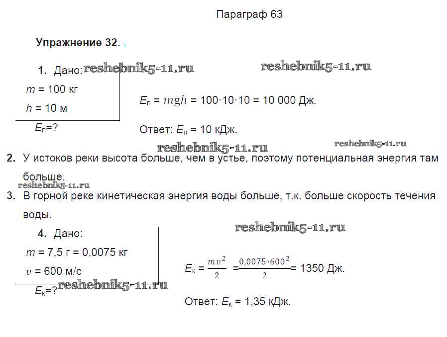 Готовая домашняя работа с ответами по Физике за 7 класс Перышкин Учебник Вертикаль Дрофа 2016 ФГОС - Упражнения 32