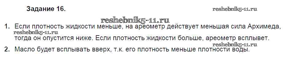 Готовая домашняя работа с ответами по Физике за 7 класс Перышкин Учебник Вертикаль Дрофа 2016 ФГОС - Задания 16