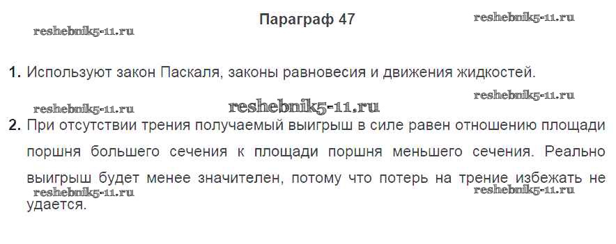 Готовая домашняя работа с ответами по Физике за 7 класс Перышкин Учебник Вертикаль Дрофа 2016 ФГОС - Вопросы. Параграфы §47