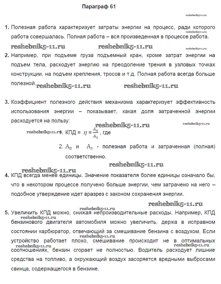 Физика за 7 класс Перышкин Учебник Вертикаль Дрофа вопрос. параграф §61