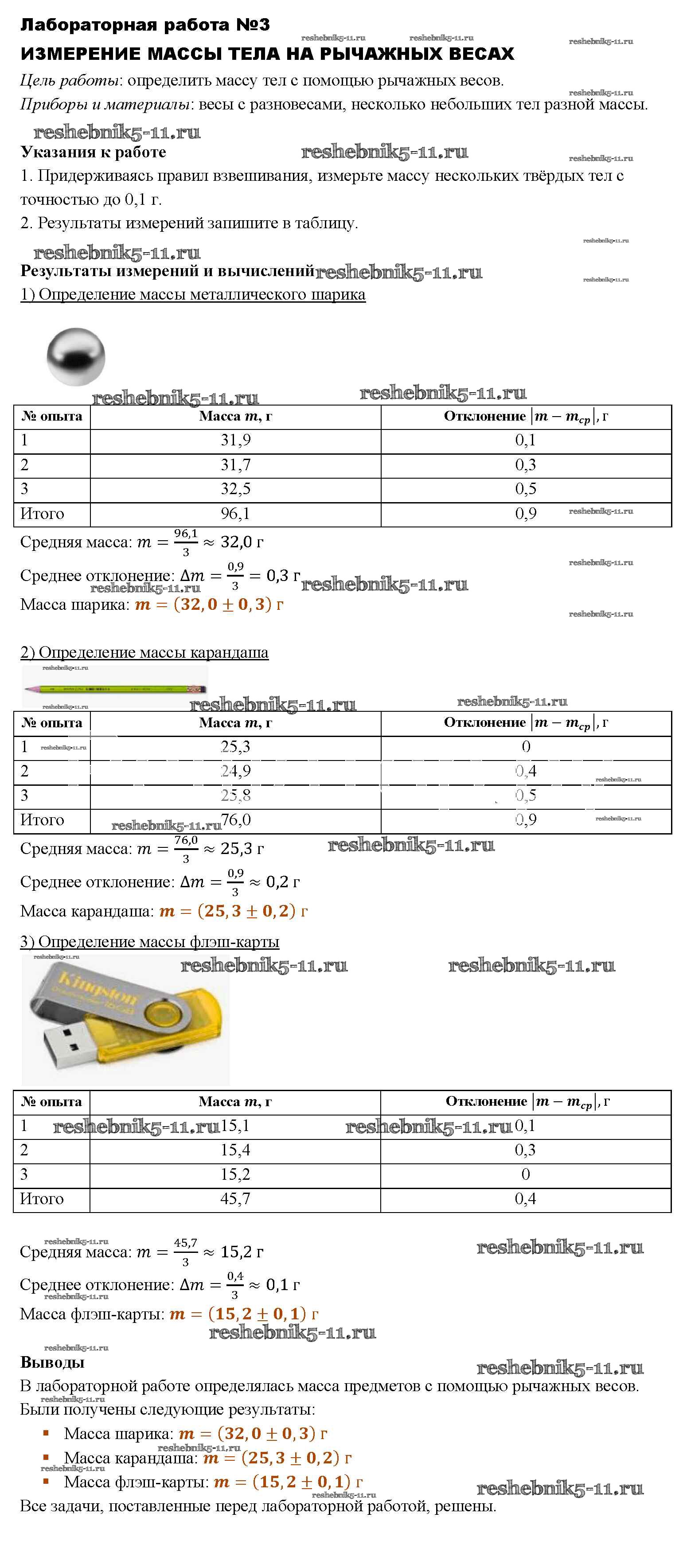 Готовая домашняя работа с ответами по Физике за 7 класс Перышкин Учебник Вертикаль Дрофа 2016 ФГОС - Лабораторные работы 3