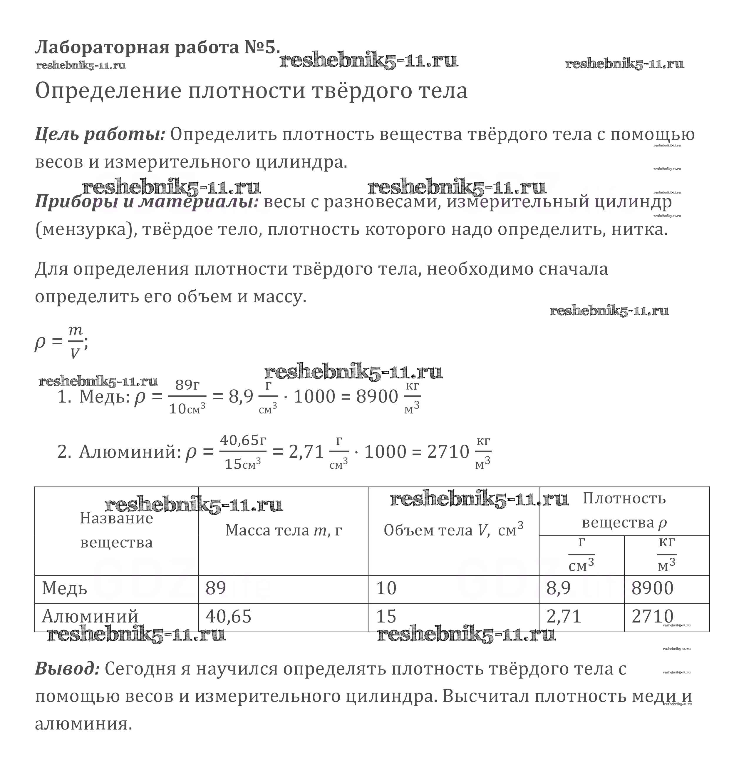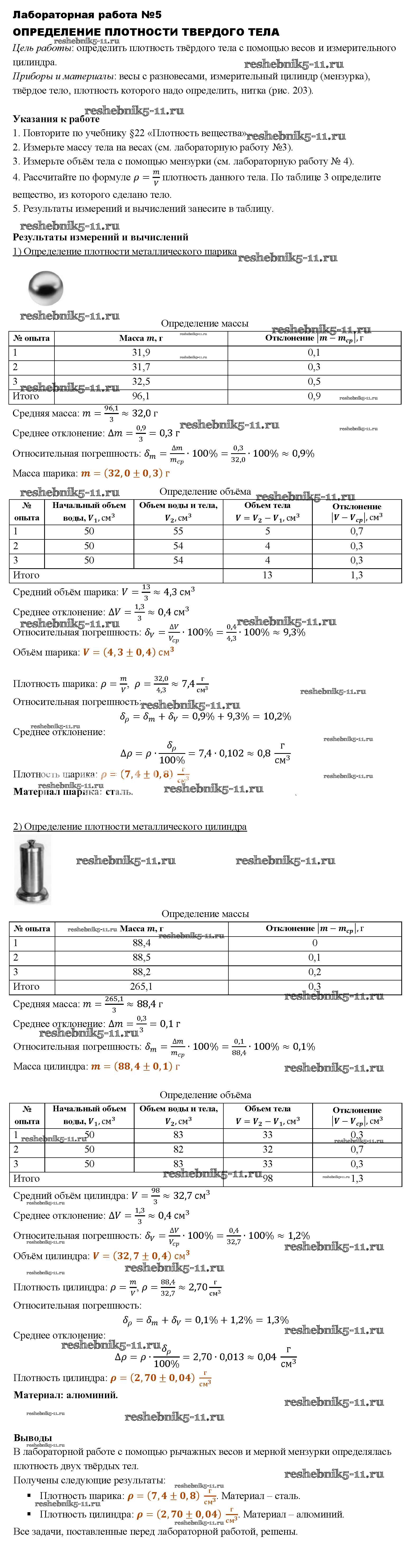 Готовая домашняя работа с ответами по Физике за 7 класс Перышкин Учебник Вертикаль Дрофа 2016 ФГОС - Лабораторные работы 5