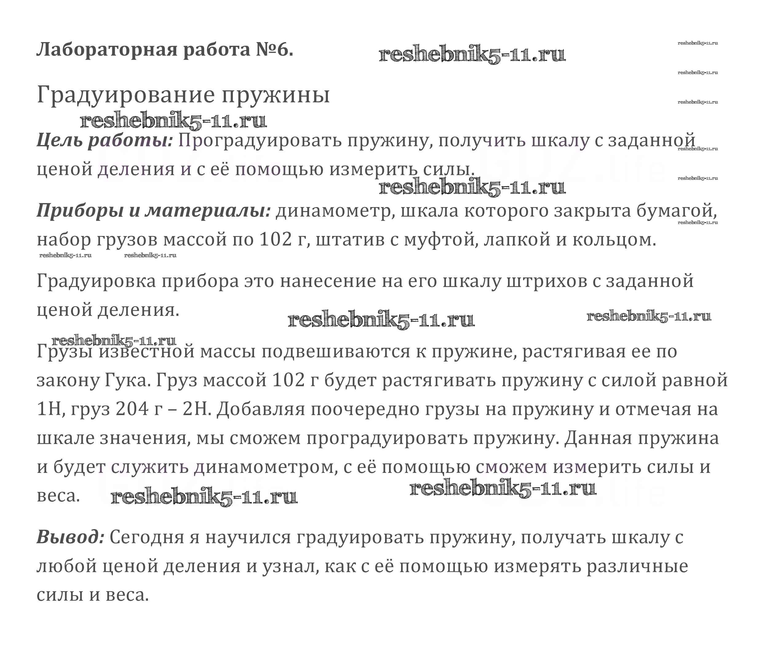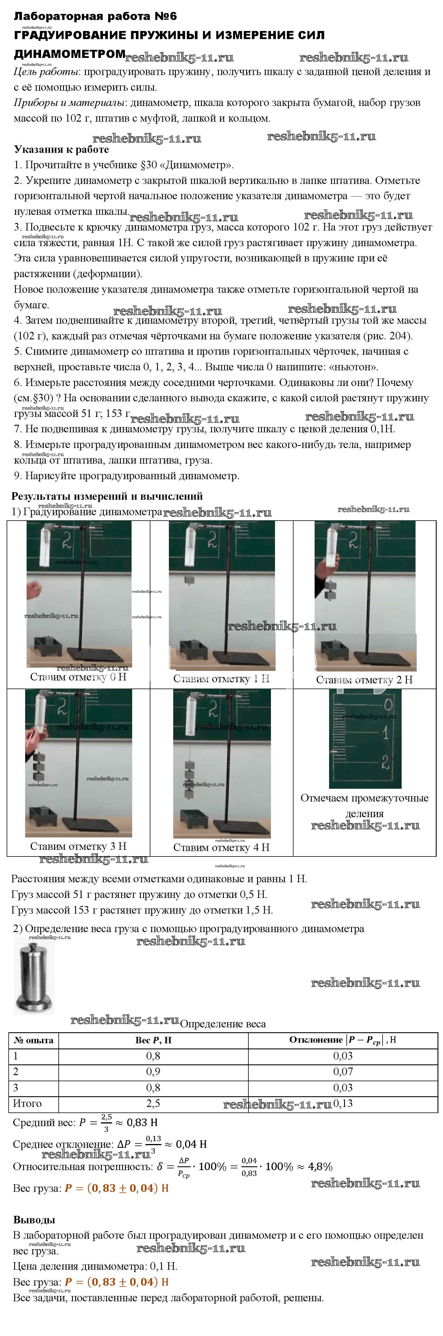 Готовая домашняя работа с ответами по Физике за 7 класс Перышкин Учебник Вертикаль Дрофа 2016 ФГОС - Лабораторные работы 6