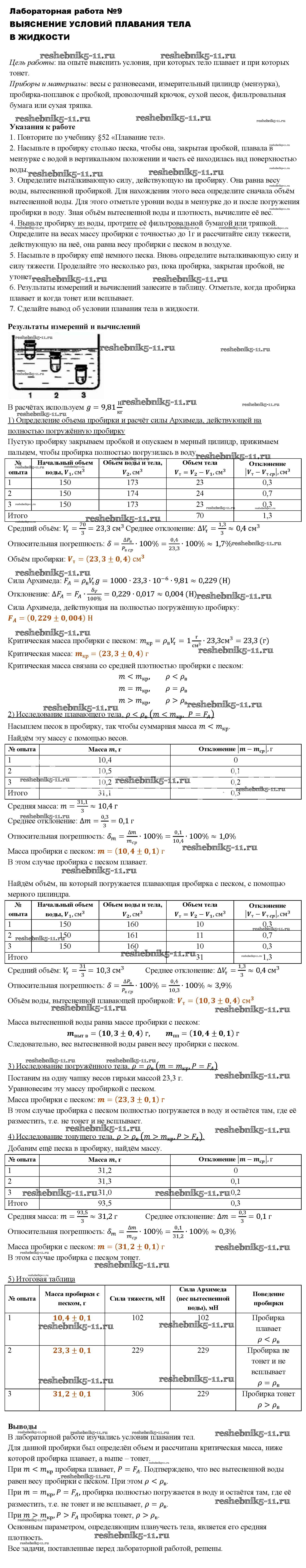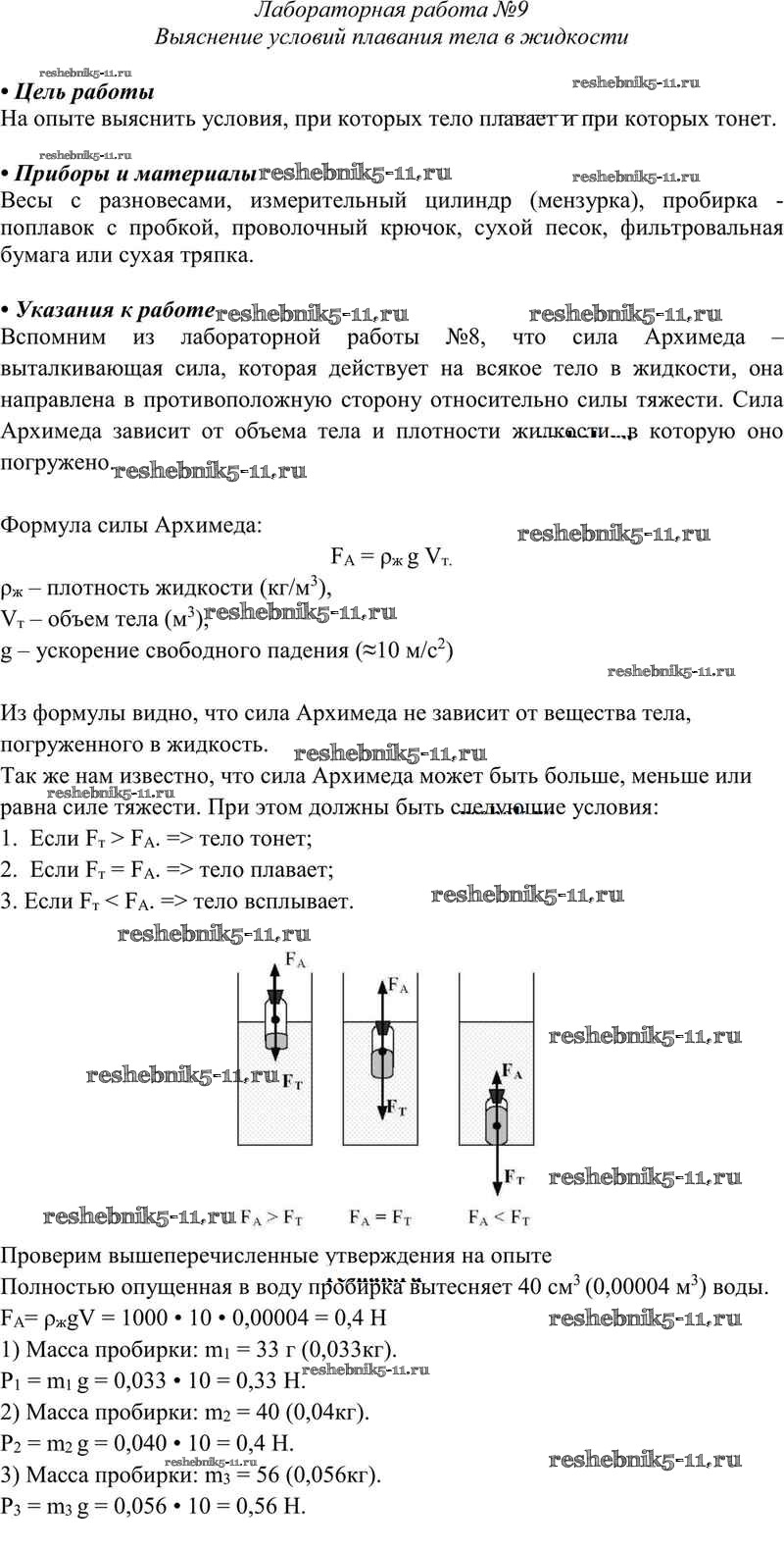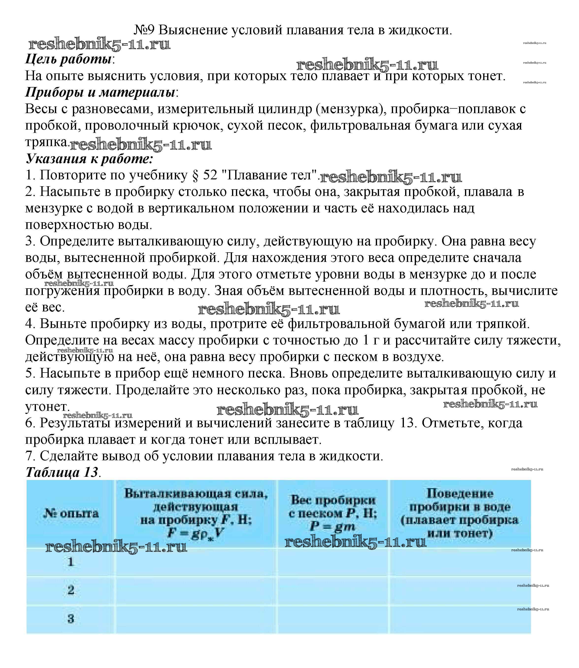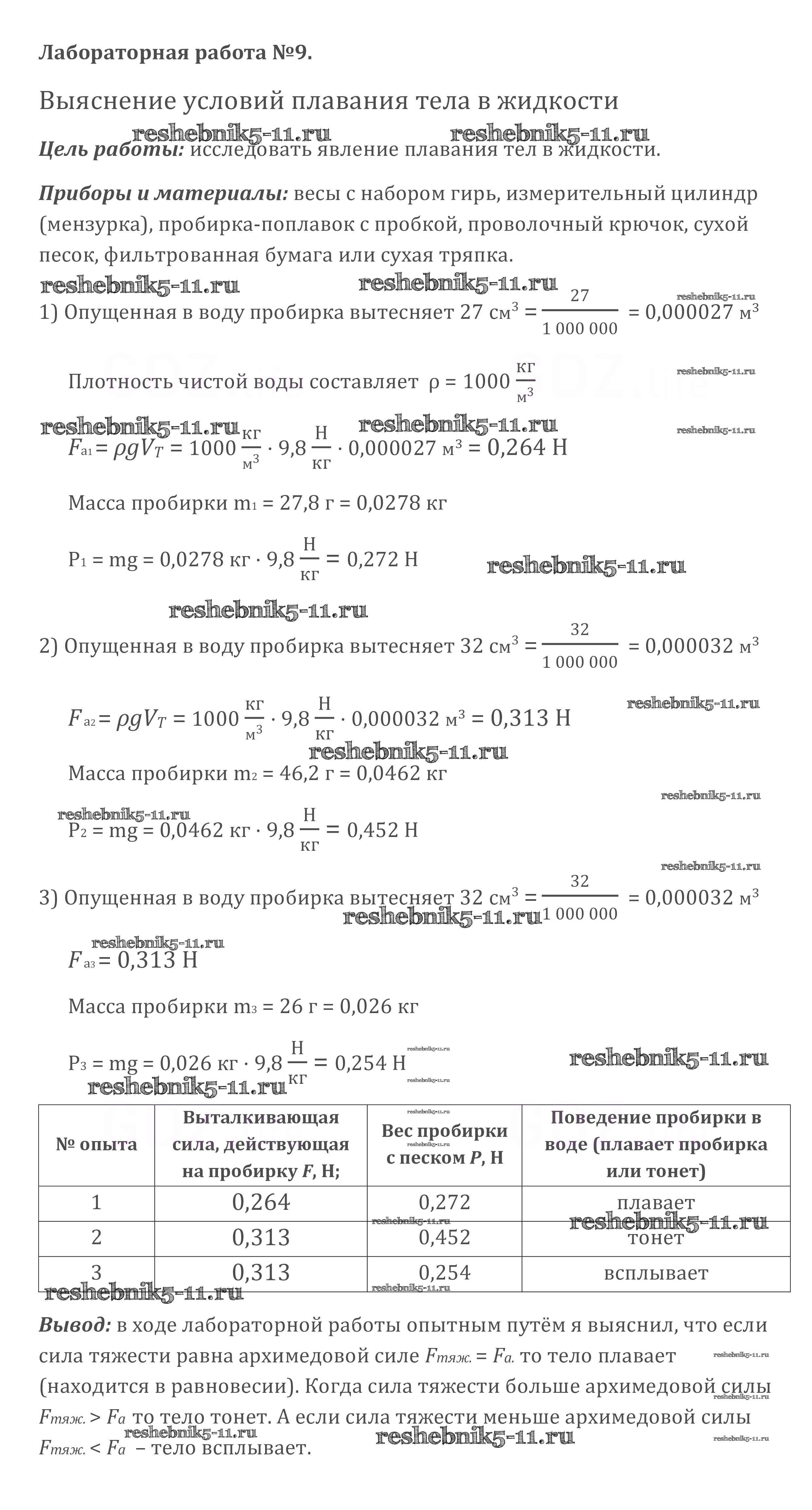 Готовая домашняя работа с ответами по Физике за 7 класс Перышкин Учебник Вертикаль Дрофа 2016 ФГОС - Лабораторные работы 9