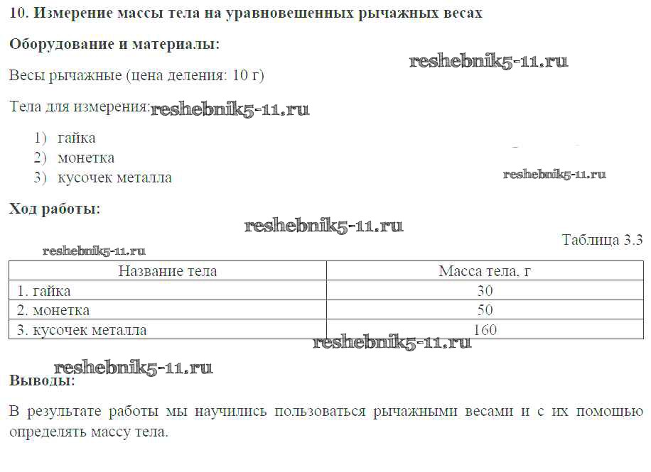 Решебник / ЛР / №10. Измерение массы тела на уравновешенных рычажных весах