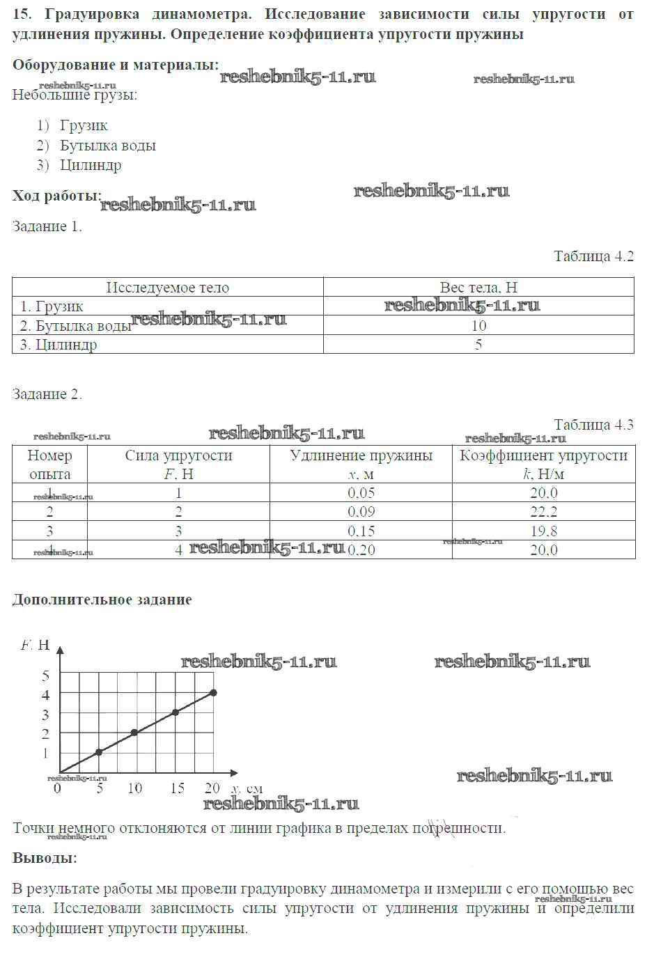 Готовая домашняя работа с ответами по Физике за 7 класс Белага, Воронцова, Жумаев, Ломаченков, Панебратцев Тетрадь-практикум Сферы Просвещение 2012 ФГОС - Лабораторные работы №15. Градуировка динамометра
