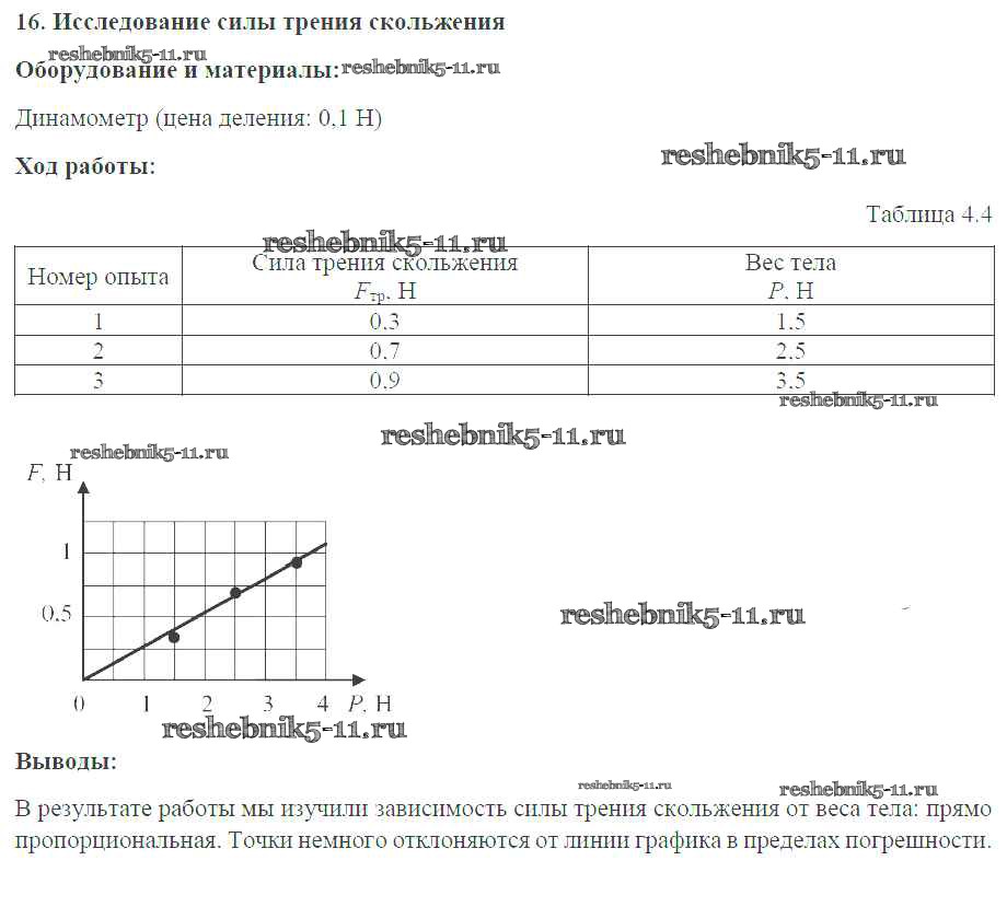 Готовая домашняя работа с ответами по Физике за 7 класс Белага, Воронцова, Жумаев, Ломаченков, Панебратцев Тетрадь-практикум Сферы Просвещение 2012 ФГОС - Лабораторные работы №16. Исследование силы трения скольжения