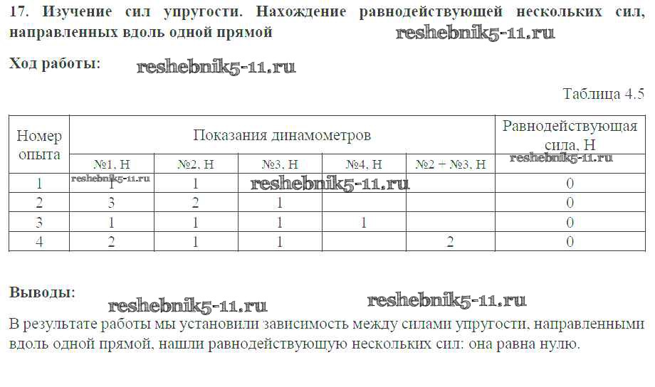 Готовая домашняя работа с ответами по Физике за 7 класс Белага, Воронцова, Жумаев, Ломаченков, Панебратцев Тетрадь-практикум Сферы Просвещение 2012 ФГОС - Лабораторные работы №17. Изучение сил упругости