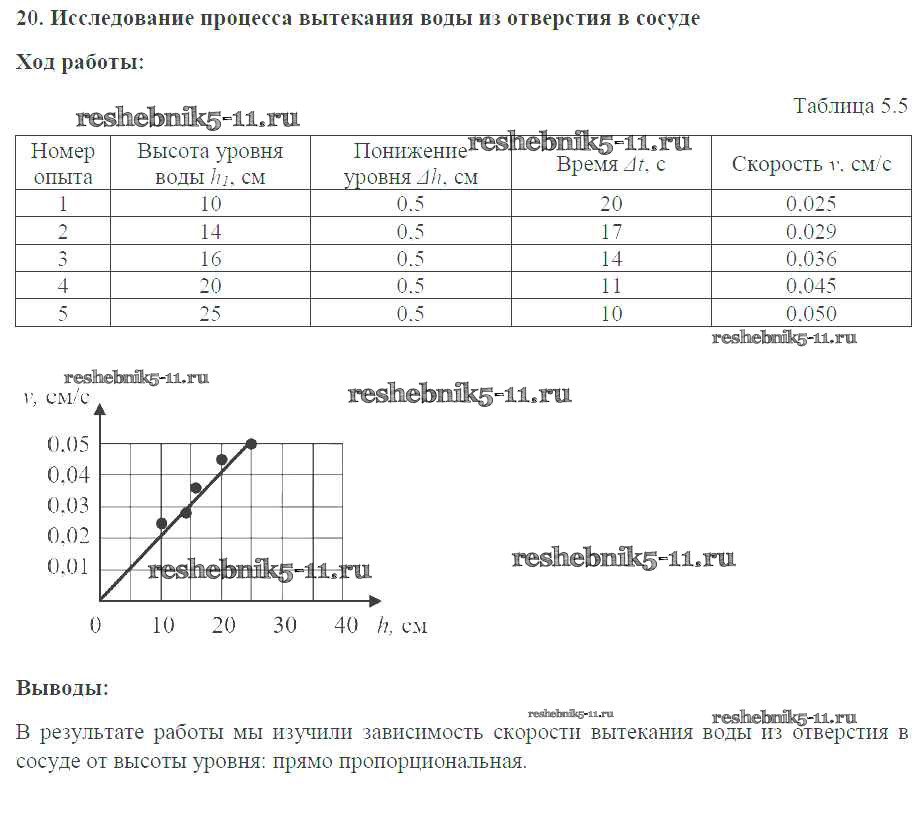 Решебник / ЛР / №20. Исследование процесса вытекания воды из отверстия в сосуде