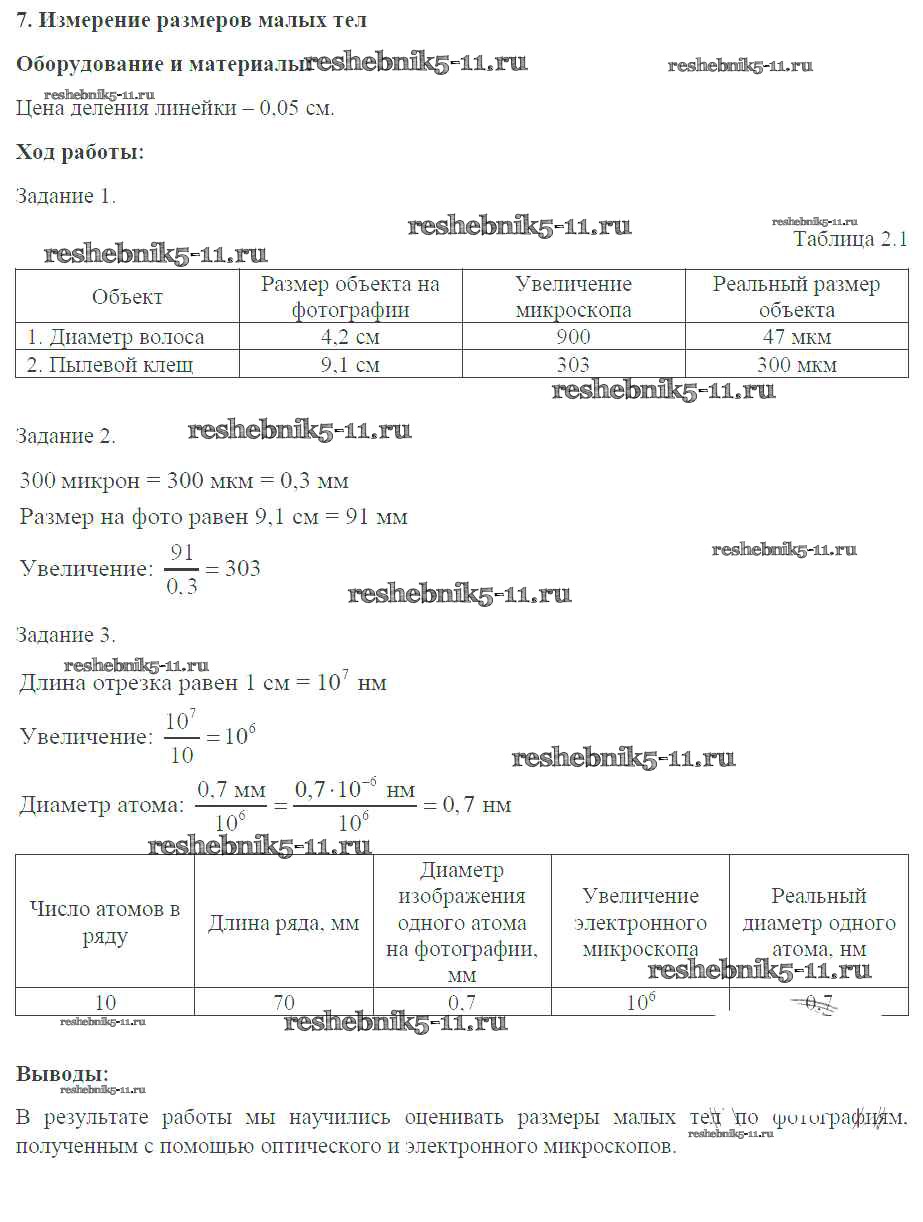 Готовая домашняя работа с ответами по Физике за 7 класс Белага, Воронцова, Жумаев, Ломаченков, Панебратцев Тетрадь-практикум Сферы Просвещение 2012 ФГОС - Лабораторные работы №7. Измерение размеров малых тел