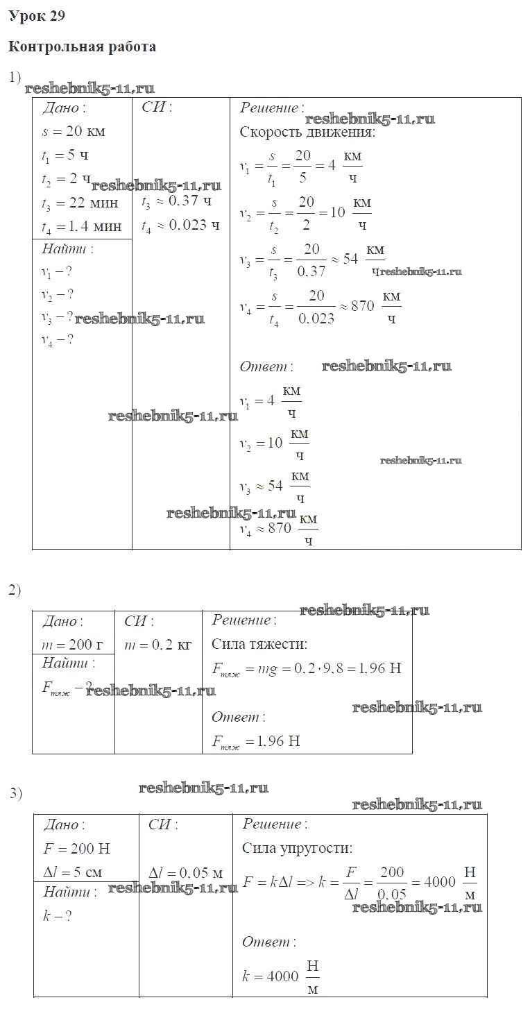 Готовая домашняя работа с ответами по Физике за 7 класс Минькова, Иванова Рабочая тетрадь УМК Экзамен 2018 ФГОС - Уроки 29