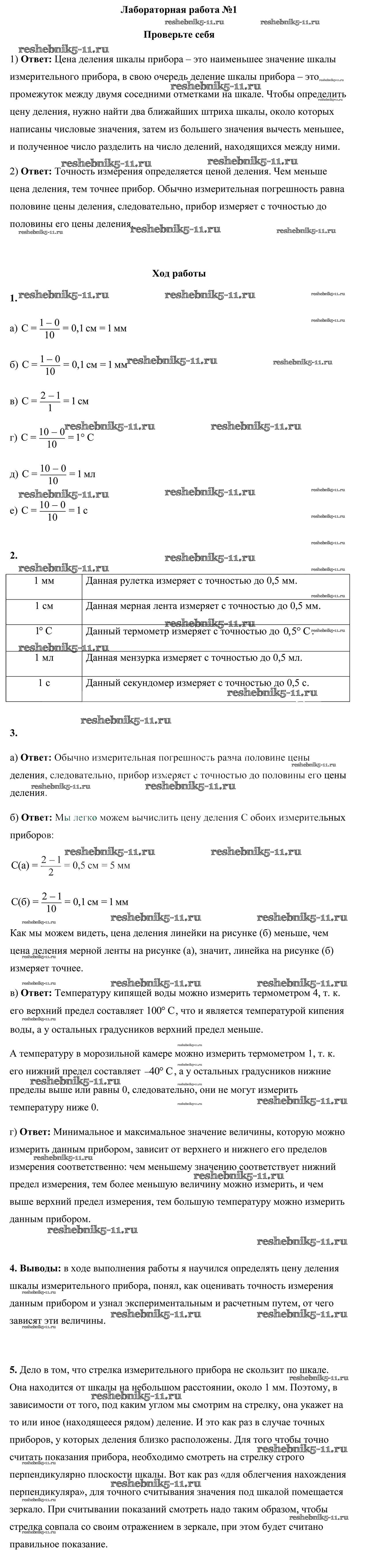 Готовая домашняя работа с ответами по Физике за 7 класс Исаченкова, Лещинский, Егорова Лабораторные работы Аверсэв 2016 - Лабораторные работы 1