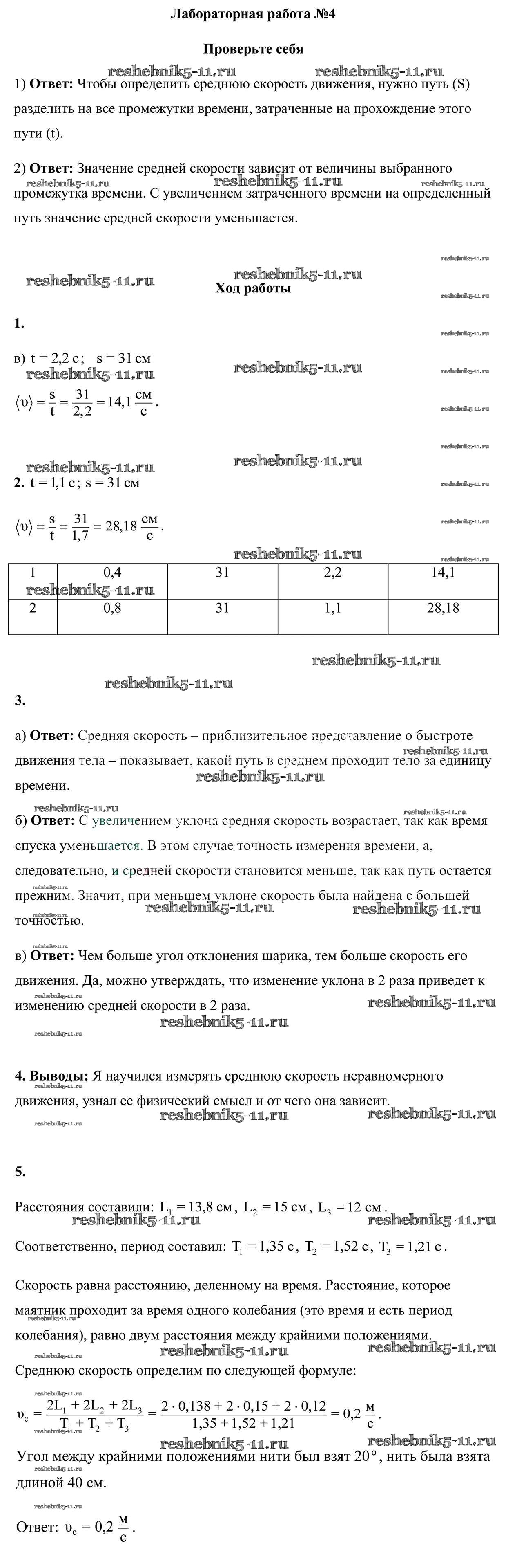 Готовая домашняя работа с ответами по Физике за 7 класс Исаченкова, Лещинский, Егорова Лабораторные работы Аверсэв 2016 - Лабораторные работы 4