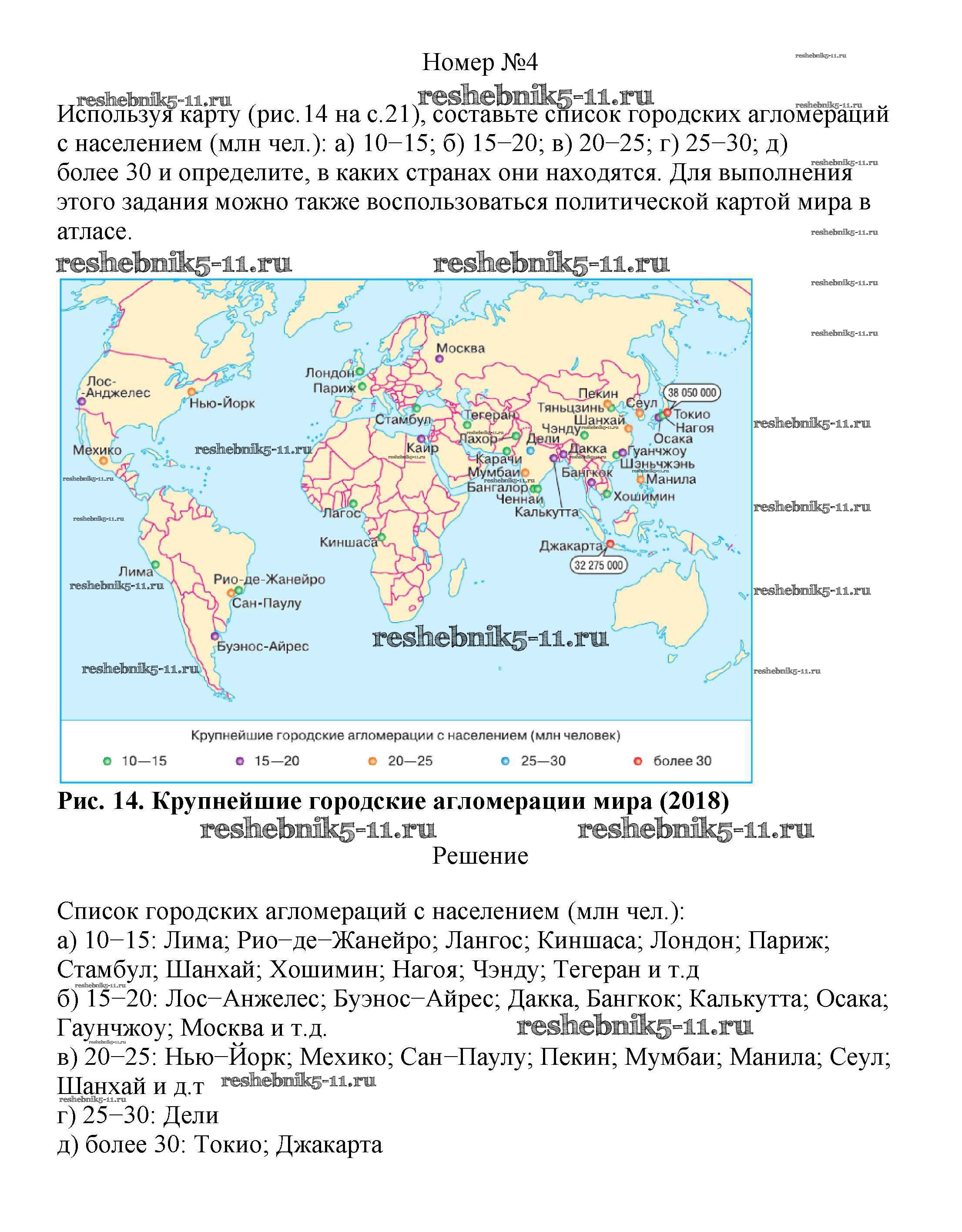 Готовая домашняя работа с ответами по Географии за 7 класс Алексеев, Николина, Липкина Учебник Полярная звезда Просвещение 2022 ФГОС - §6. Города и сельские поселения 4