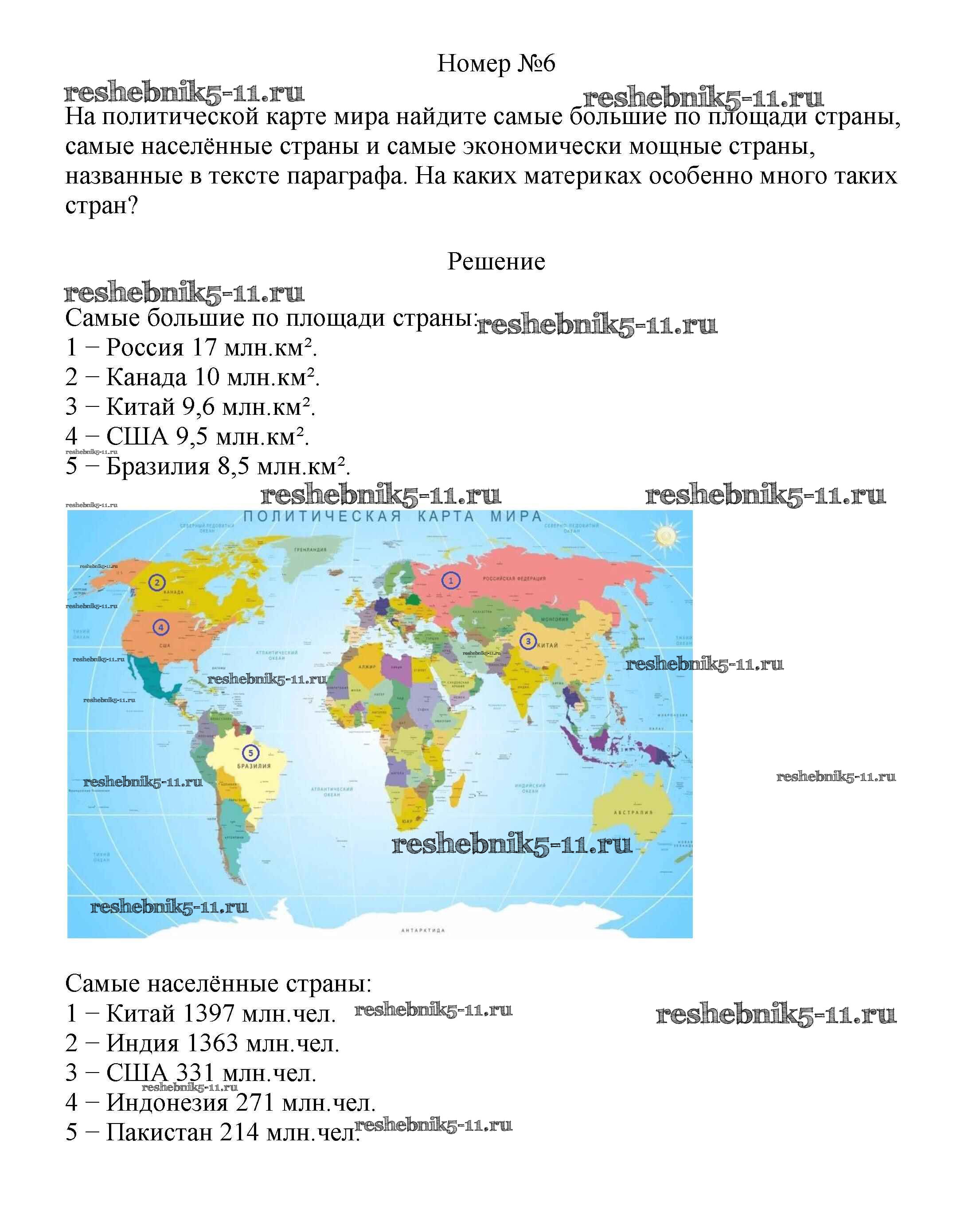 Готовая домашняя работа с ответами по Географии за 7 класс Алексеев, Николина, Липкина Учебник Полярная звезда Просвещение 2022 ФГОС - §7. Страны мира 6