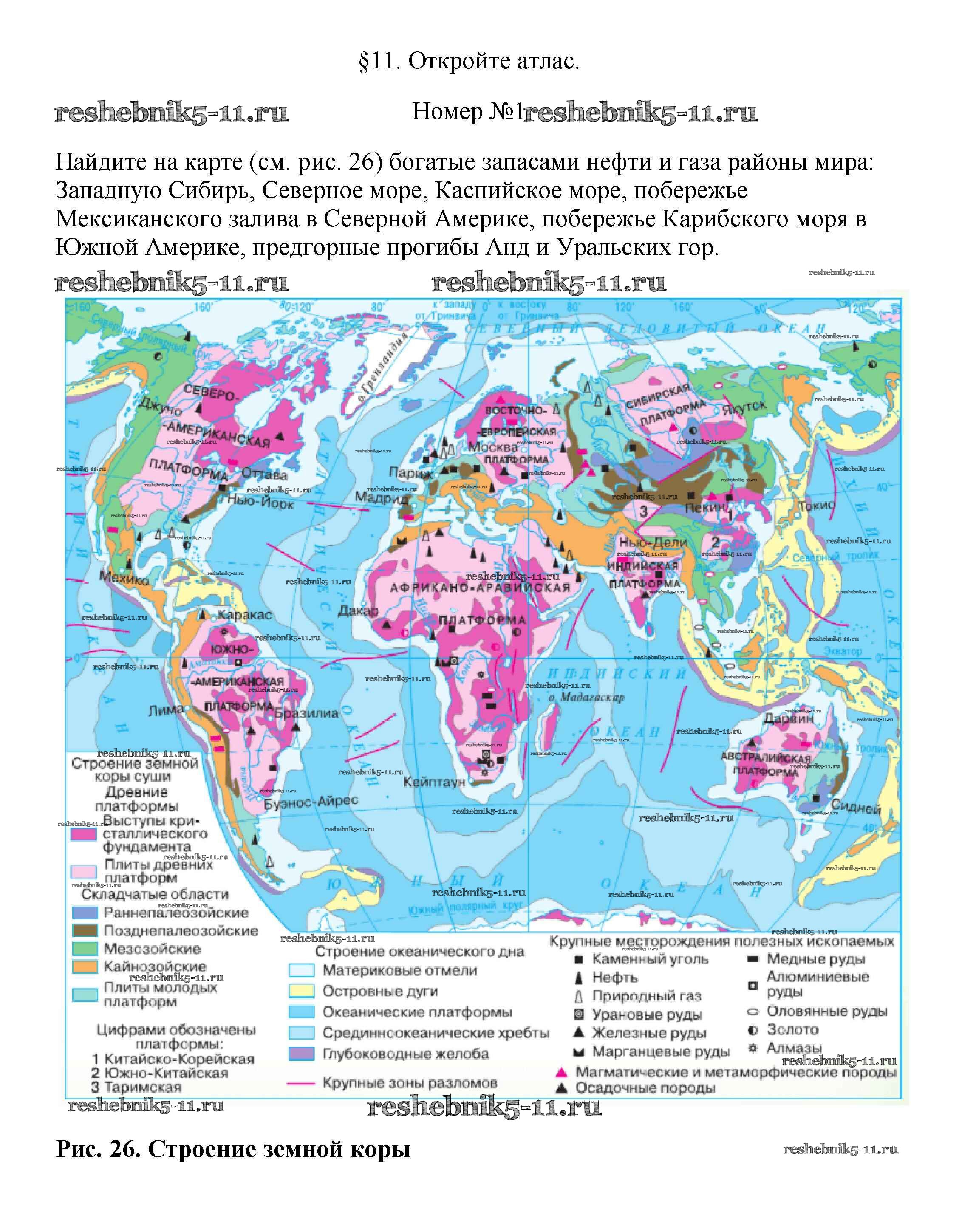Готовая домашняя работа с ответами по Географии за 7 класс Алексеев, Николина, Липкина Учебник Полярная звезда Просвещение 2022 ФГОС - §11. Природные ресурсы земной коры 1
