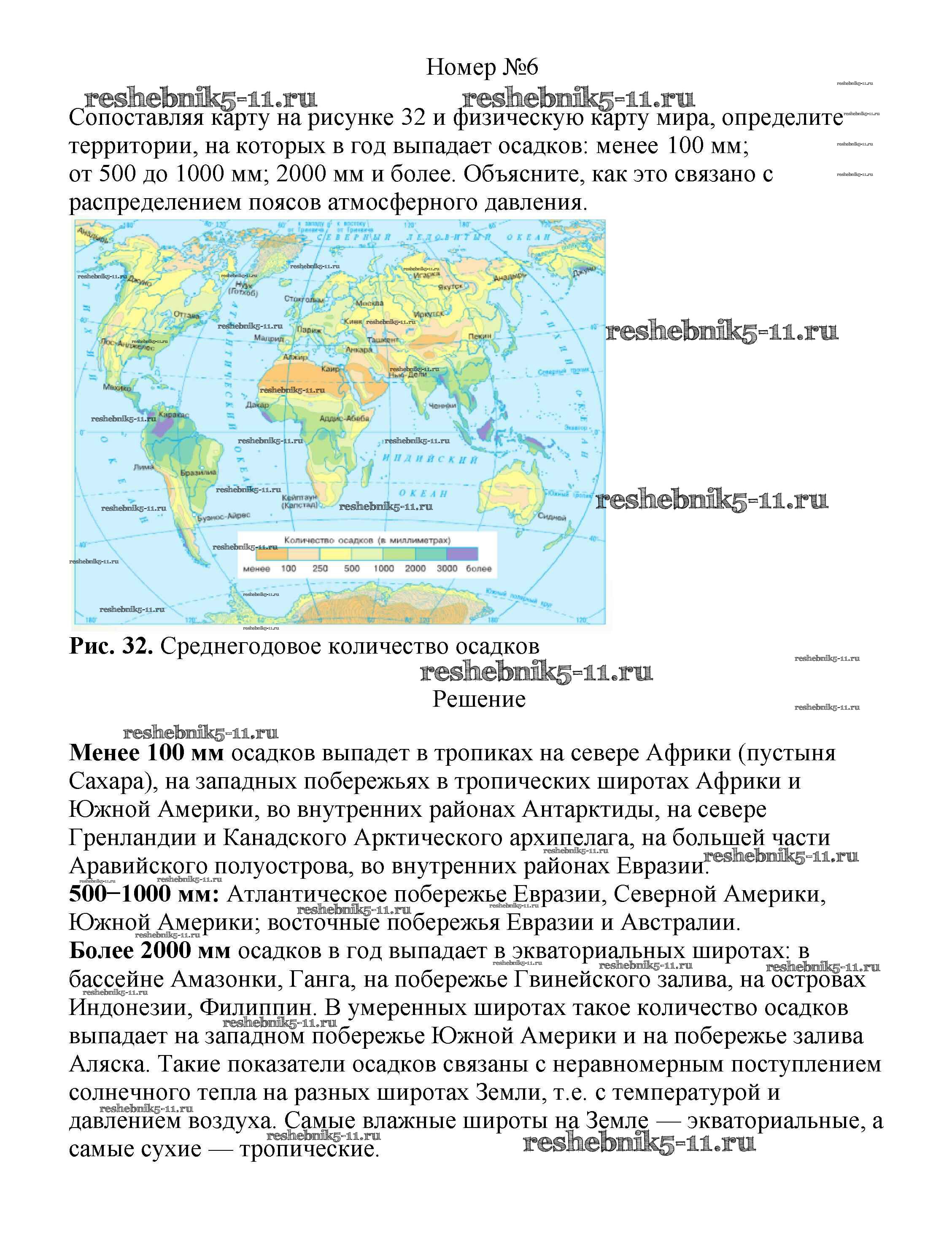 Готовая домашняя работа с ответами по Географии за 7 класс Алексеев, Николина, Липкина Учебник Полярная звезда Просвещение 2022 ФГОС - §13. Давление воздуха и осадки на разных широтах 6