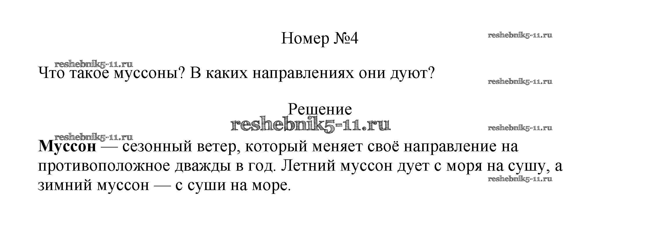 Готовая домашняя работа с ответами по Географии за 7 класс Алексеев, Николина, Липкина Учебник Полярная звезда Просвещение 2022 ФГОС - §14. Общая циркуляция атмосферы 4