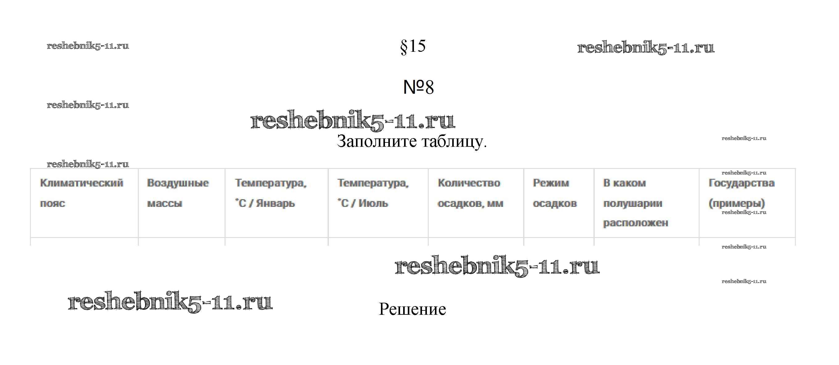 Готовая домашняя работа с ответами по Географии за 7 класс Алексеев, Николина, Липкина Учебник Полярная звезда Просвещение 2022 ФГОС - §15. Климатические пояса и области Земли 8