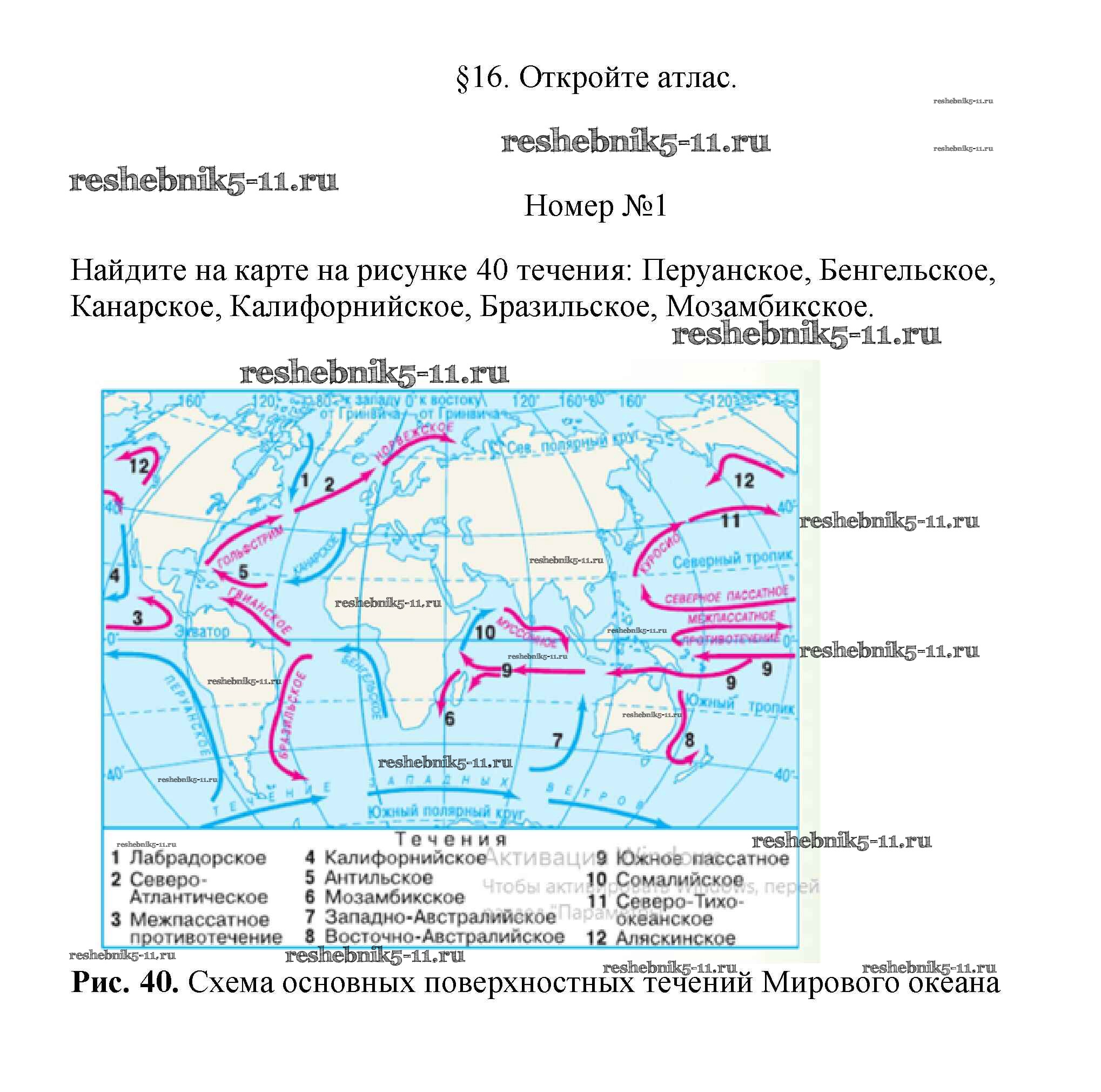 Готовая домашняя работа с ответами по Географии за 7 класс Алексеев, Николина, Липкина Учебник Полярная звезда Просвещение 2022 ФГОС - §16. Океанические течения 1