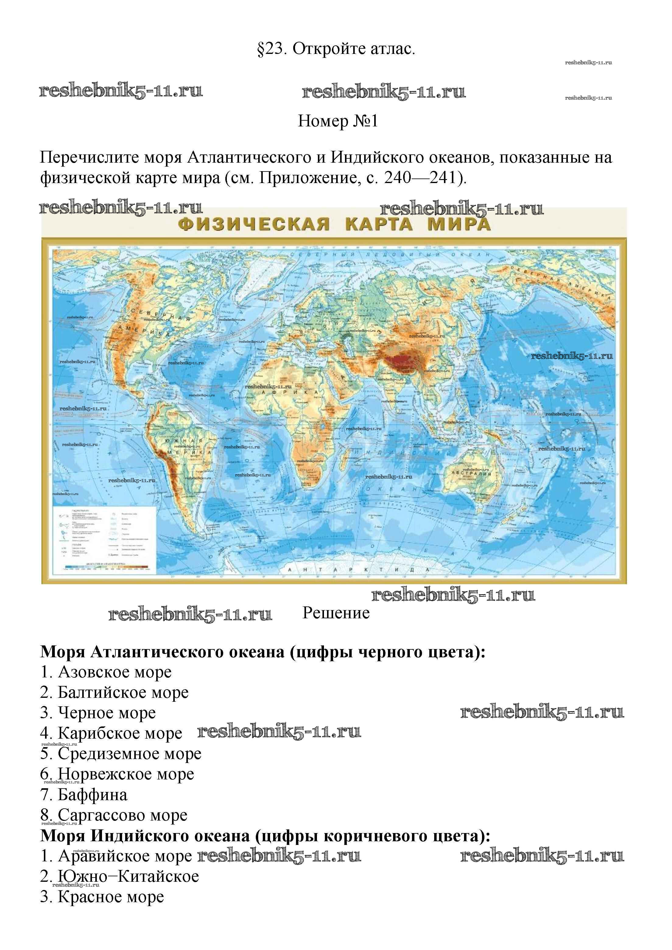 Готовая домашняя работа с ответами по Географии за 7 класс Алексеев, Николина, Липкина Учебник Полярная звезда Просвещение 2022 ФГОС - §23. Океаны (2) 1