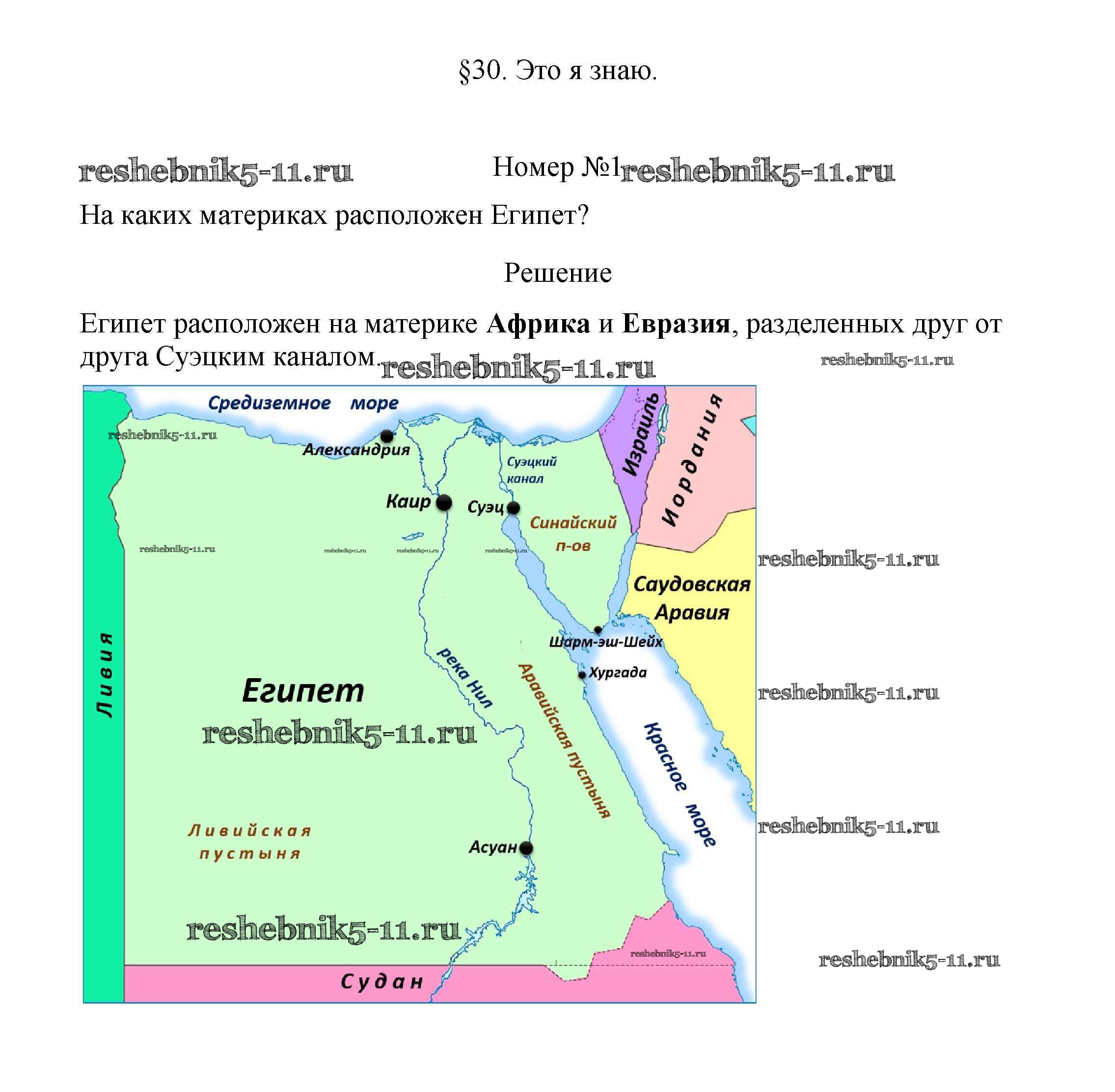 Готовая домашняя работа с ответами по Географии за 7 класс Алексеев, Николина, Липкина Учебник Полярная звезда Просвещение 2022 ФГОС - §30. Египет 1