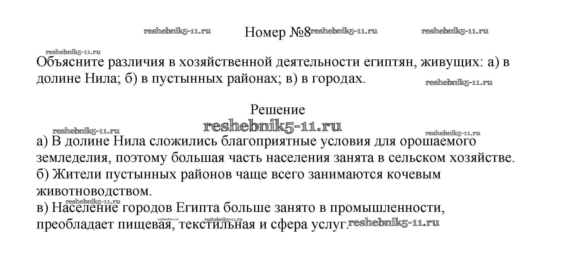 Готовая домашняя работа с ответами по Географии за 7 класс Алексеев, Николина, Липкина Учебник Полярная звезда Просвещение 2022 ФГОС - §30. Египет 8