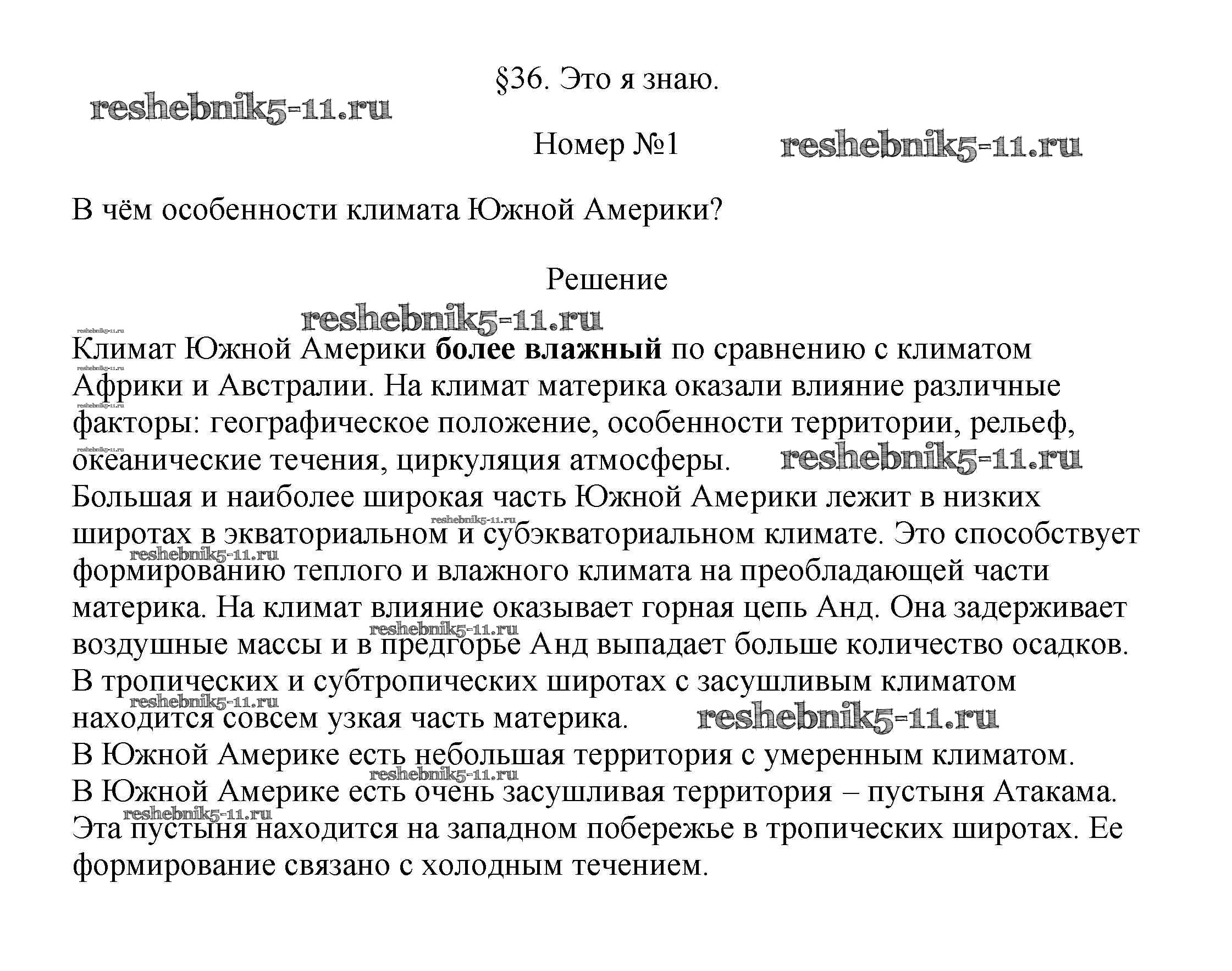 Готовая домашняя работа с ответами по Географии за 7 класс Алексеев, Николина, Липкина Учебник Полярная звезда Просвещение 2022 ФГОС - §36. Южная Америка: образ материка (2) 1