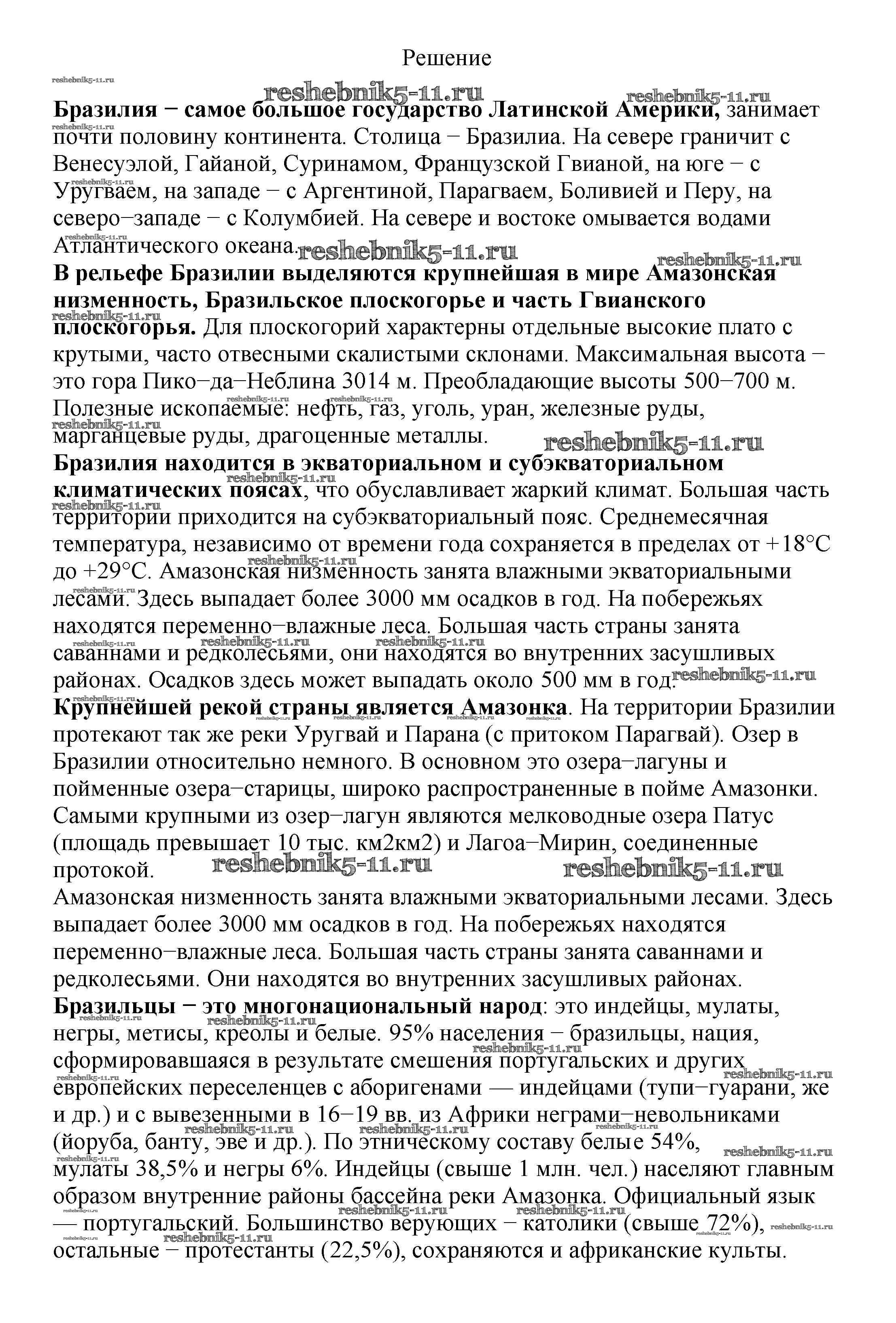 Готовая домашняя работа с ответами по Географии за 7 класс Алексеев, Николина, Липкина Учебник Полярная звезда Просвещение 2022 ФГОС - §40. Бразилия 7