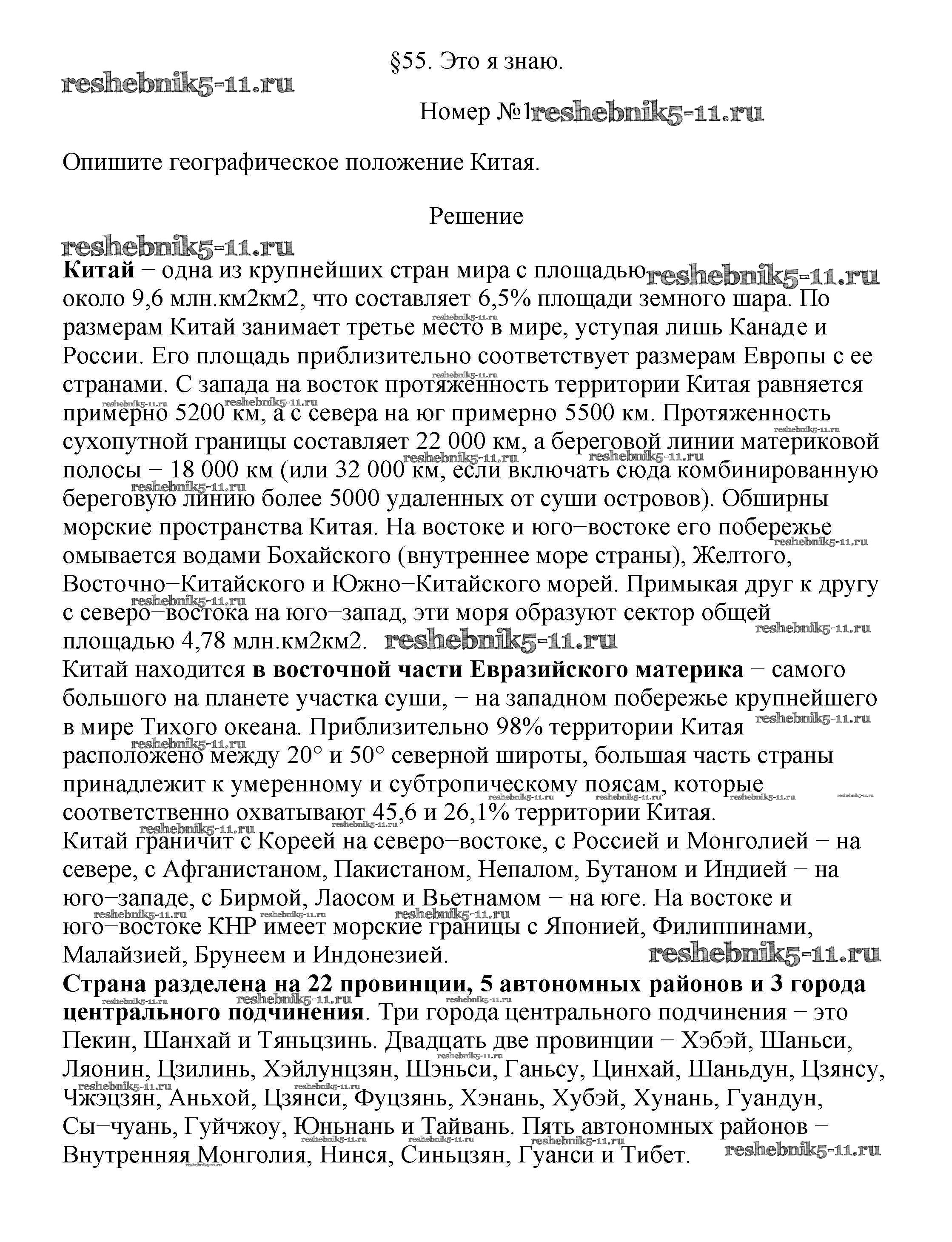 Готовая домашняя работа с ответами по Географии за 7 класс Алексеев, Николина, Липкина Учебник Полярная звезда Просвещение 2022 ФГОС - §55. Китай 1