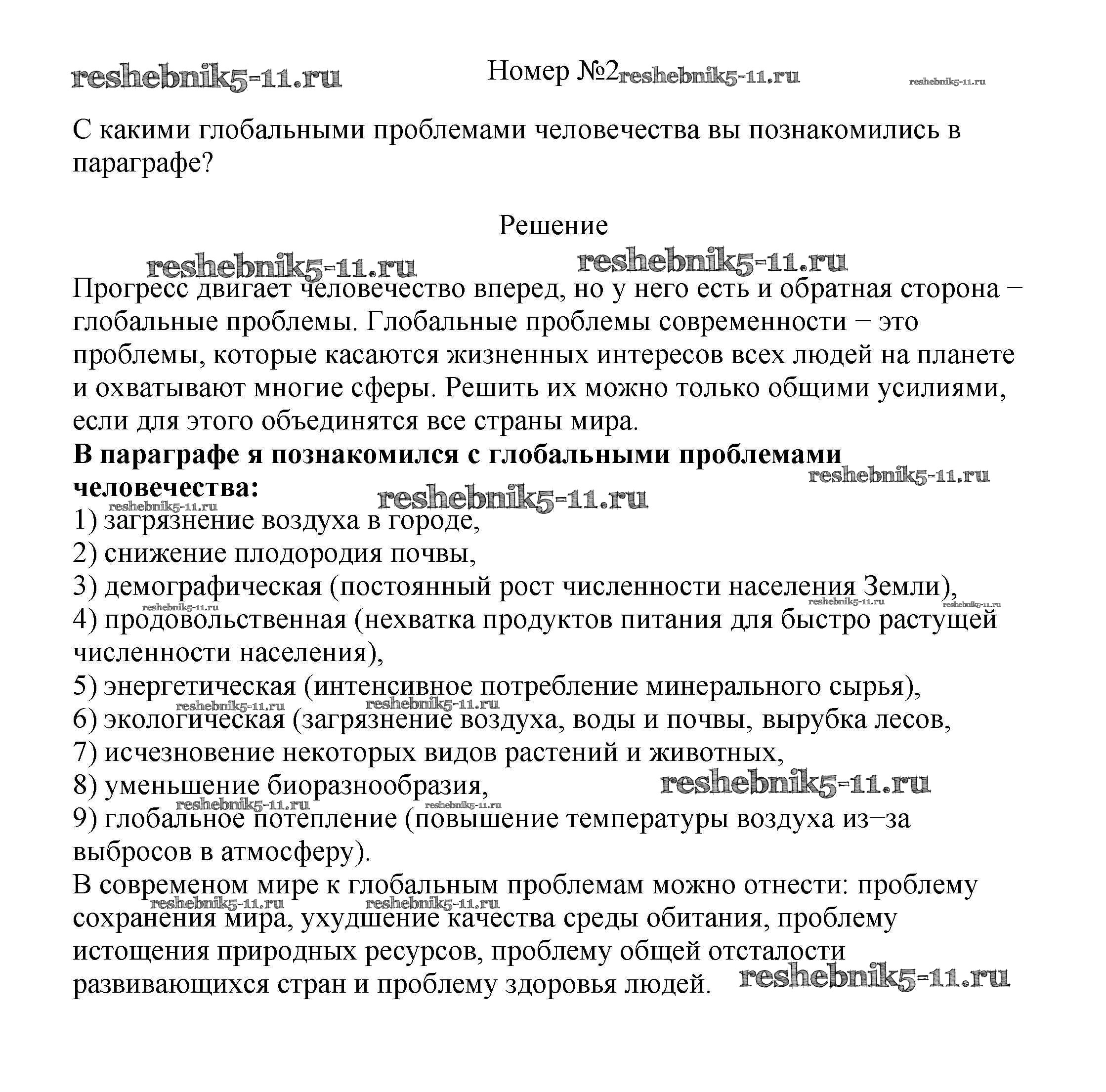 Готовая домашняя работа с ответами по Географии за 7 класс Алексеев, Николина, Липкина Учебник Полярная звезда Просвещение 2022 ФГОС - §57. Глобальные проблемы человечества 2