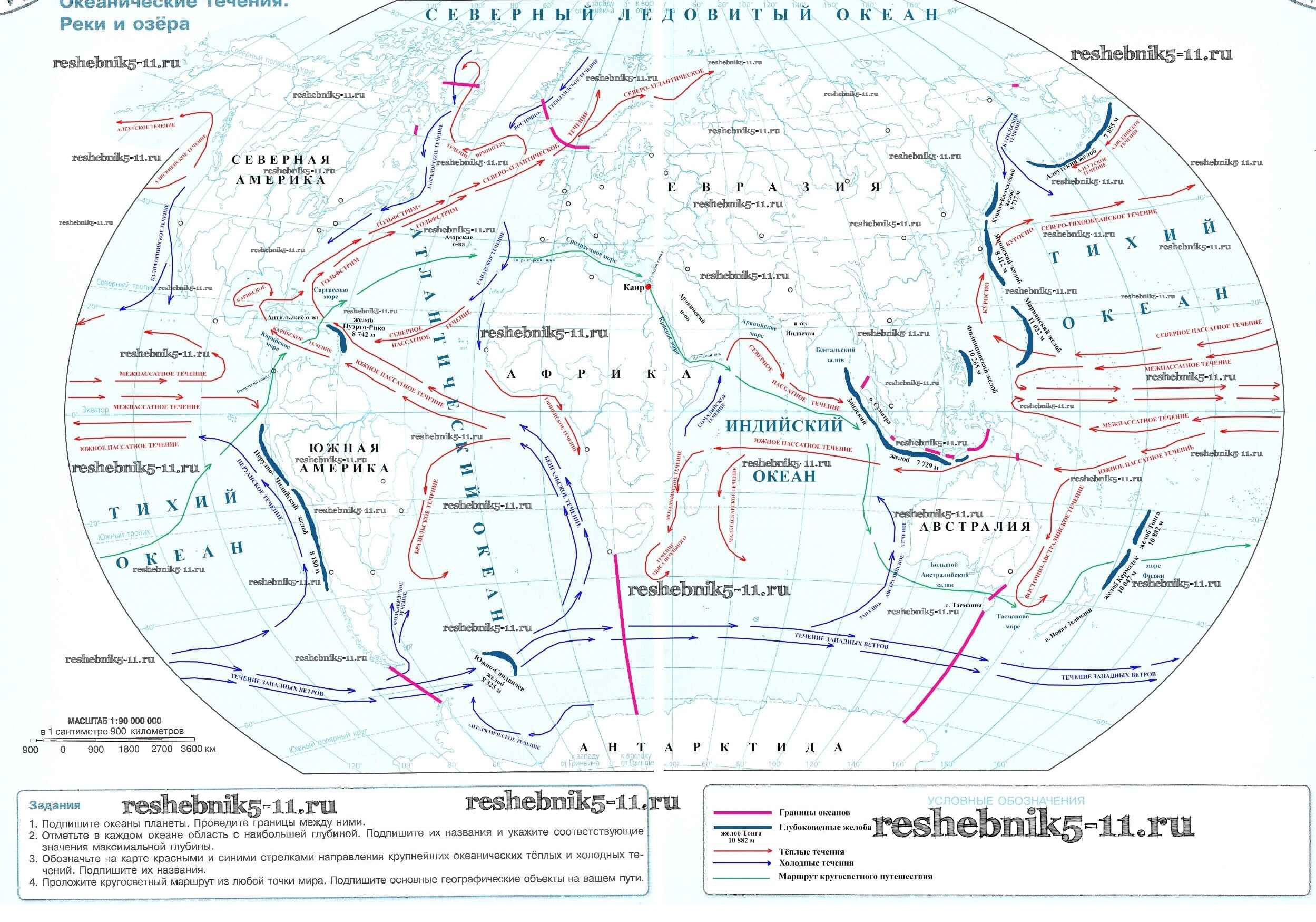 Решебник / страницы 8-9 / океанические течения. реки и озёра