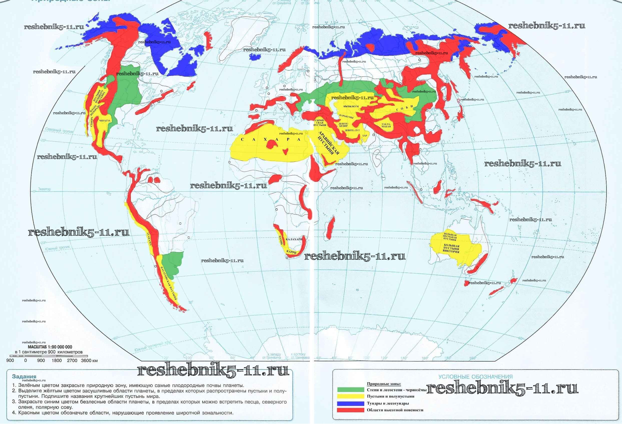 География за 7 класс Петрова Контурные карты Полярная звезда Просвещение страницы 12-13 Природные зоны