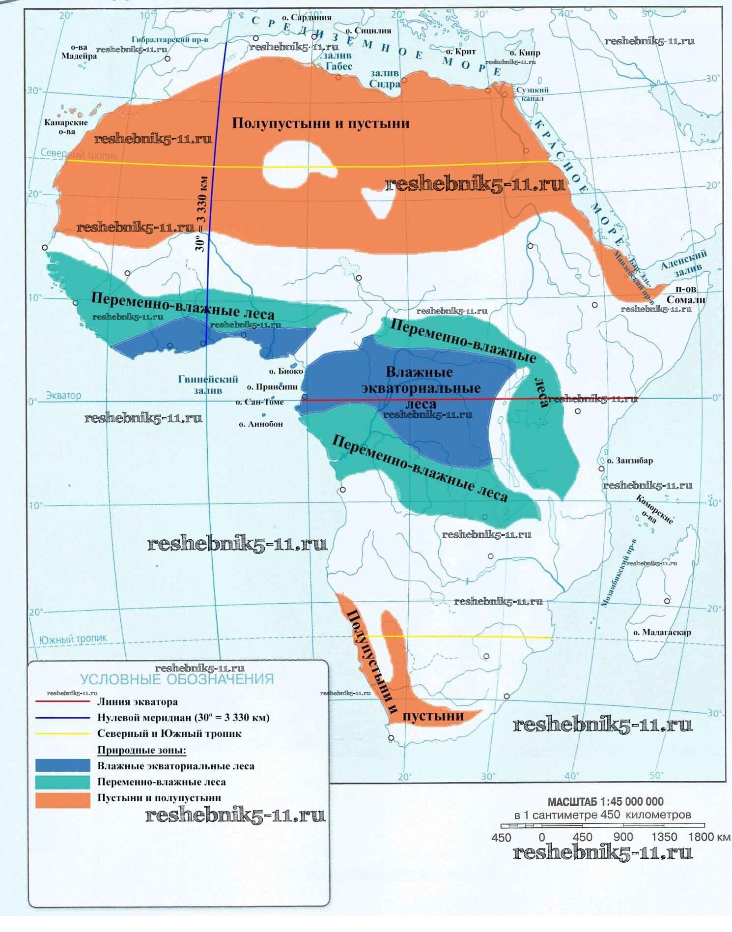 География за 7 класс Петрова Контурные карты Полярная звезда Просвещение страница 16 Африка. Физическая карта