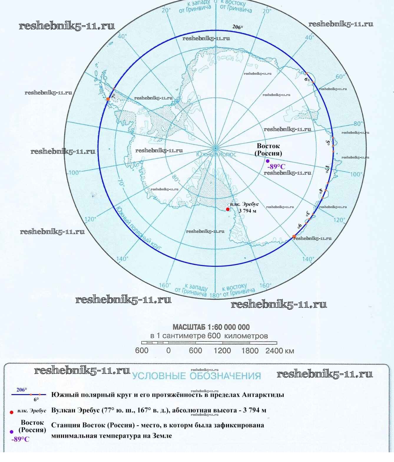 Готовая домашняя работа с ответами по Географии за 7 класс Петрова Контурные карты Полярная звезда Просвещение 2022 - Страница 19 Антарктида. Физическая карта