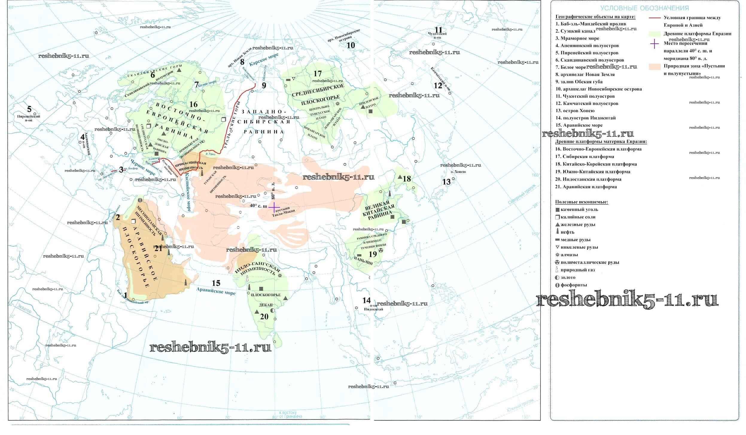 Готовая домашняя работа с ответами по Географии за 7 класс Петрова Контурные карты Полярная звезда Просвещение 2022 - Страницы 24-25 Евразия. Физическая карта